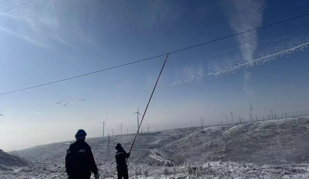 自进入冬季以来,新一轮寒潮来临,宁夏月亮山区域出现大面积冻雨降温天气,区域内风机及集电线路覆冰严重,为防止线路覆冰倒塔、线路跳闸等情况发生,新能源分公司月亮山检修部对受冻情况严重的线路进行停电并开展除冰工作。