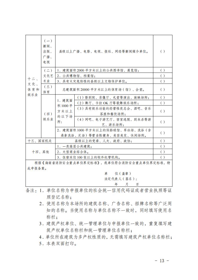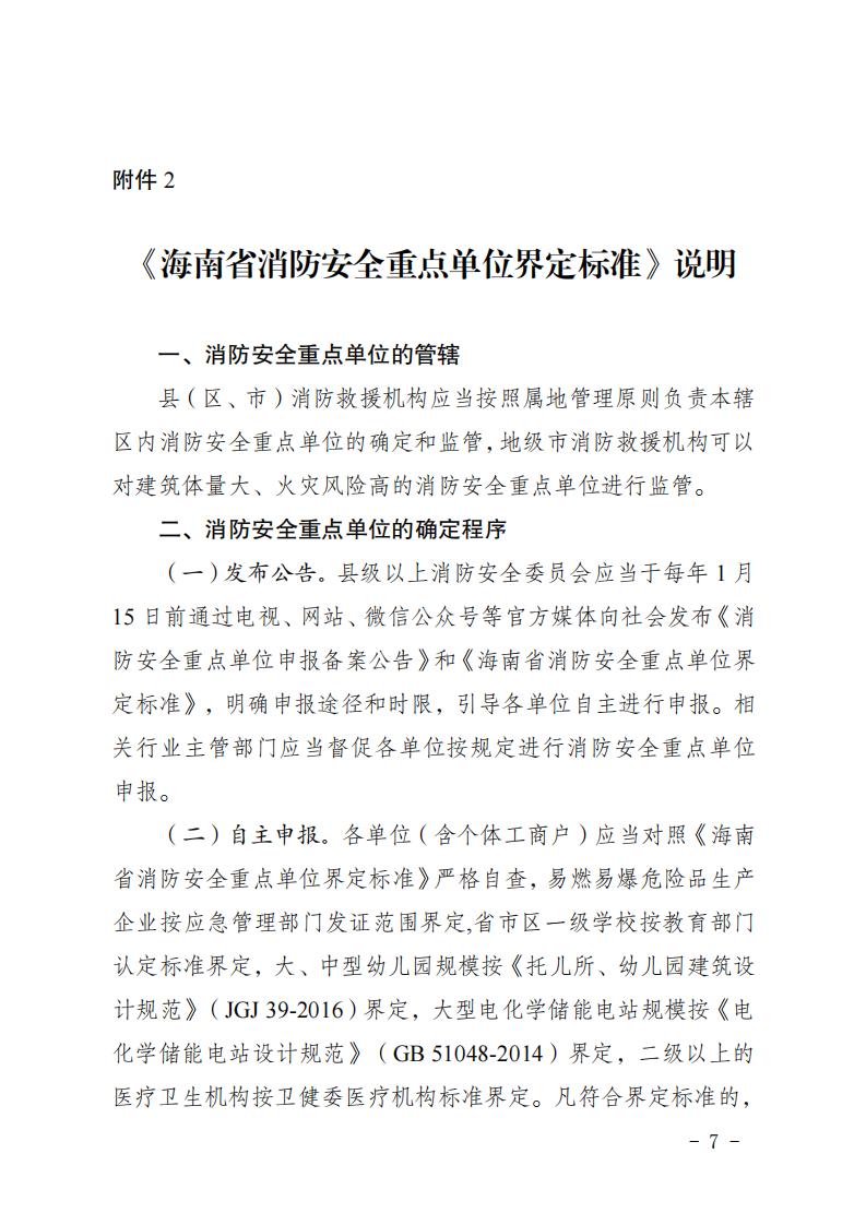 2.《海南省消防安全重点单位界定标准》说明