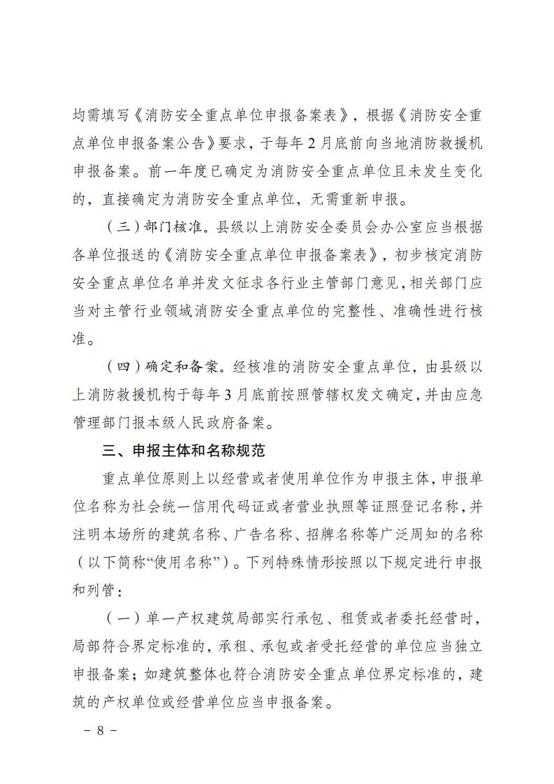请各单位对照标准认真自查,符合界定标准且未纳入消防安全重点单位的社会单位,主动向当地消防救援机构申报;有固定经营场所且具有一定规模的个体工商户,如符合界定标准,也应当主动申报。