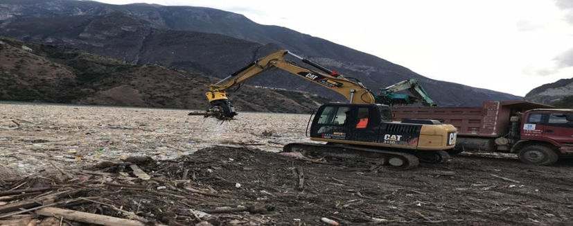 为防止漂浮物顺流而下威胁下游电站安全及人民群众生命财产安全,梨园水电站主动承担社会责任,将漂浮物全部拦截在梨园库区。经初步统计,江面漂浮物面积超43万平方米,体积超5万立方米,主要包括树木、杂草、生活垃圾、动物尸体等。