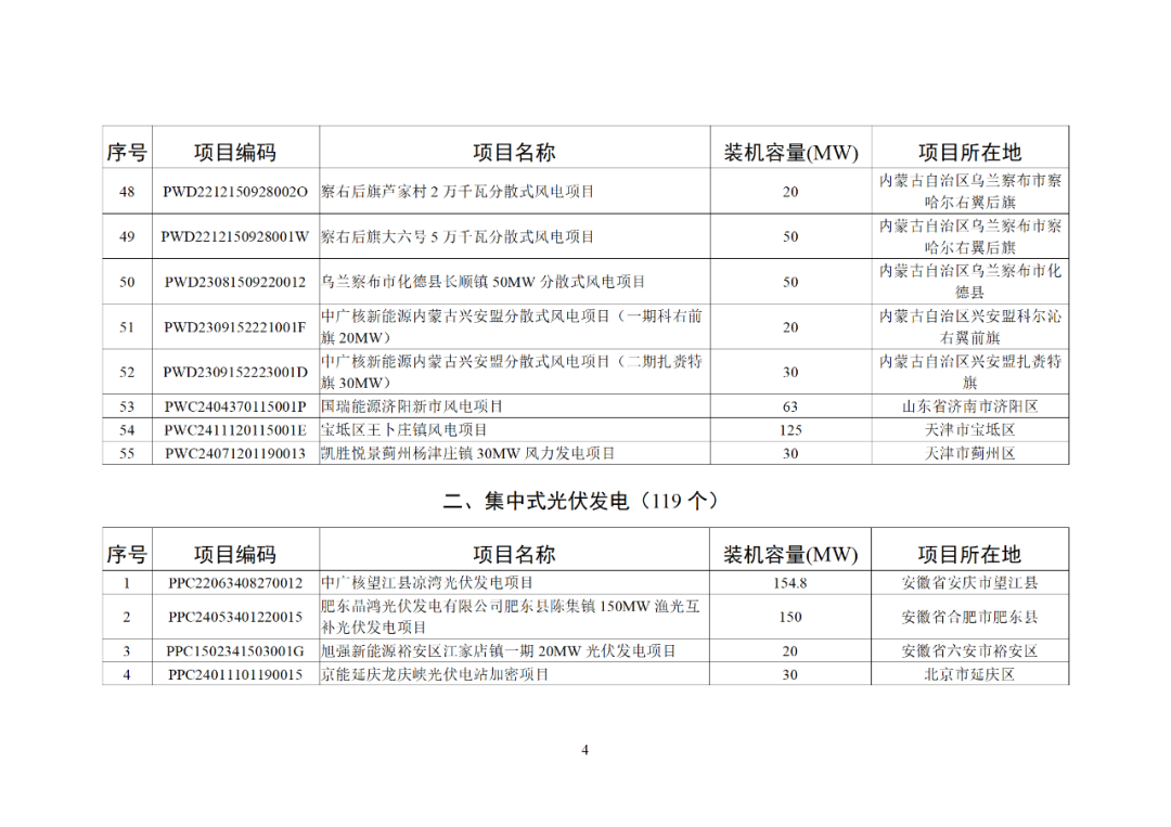 2025年6月,全国新增建档立卡新能源发电(不含户用光伏)项目共5236个,其中风电项目55个,光伏发电项目5150个(集中式光伏发电项目119个,工商业分布式光伏发电项目5031个),生物质发电项目31个。风电、集中式光伏发电、生物质发电项目清单见附件,工商业分布式光伏发电项目清单详见国家可再生能源发电项目信息管理平台网站(网址https://jdlk.renewable.org.cn/card-info-sheet/)。