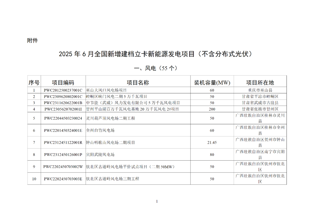 附件:2025年6月全国新增建档立卡新能源发电项目(不含分布式光伏)