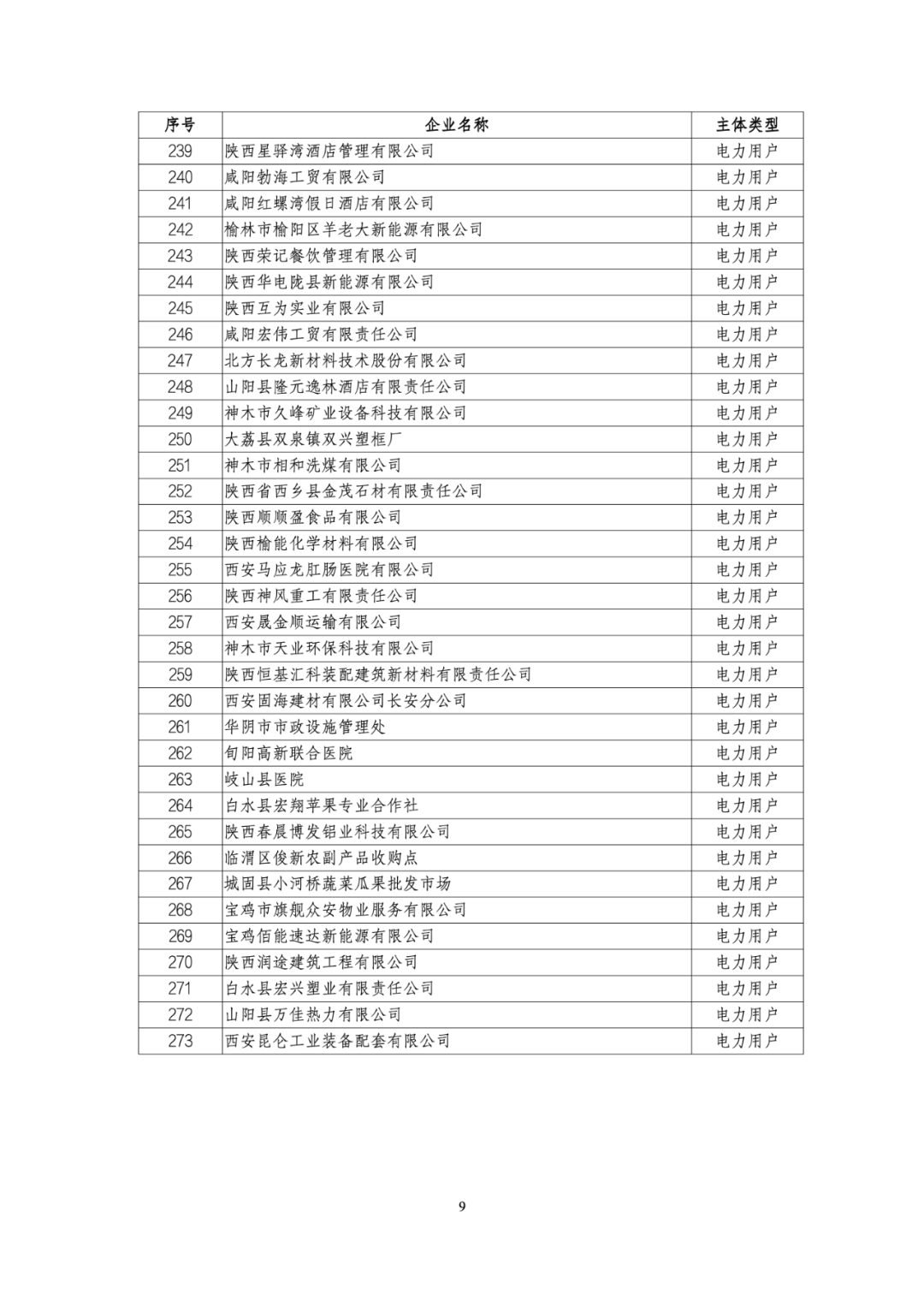 9月,在陕西电力交易平台完成注册的市场主体共272家,累计注册市场主体共12718家,具体详见下表。