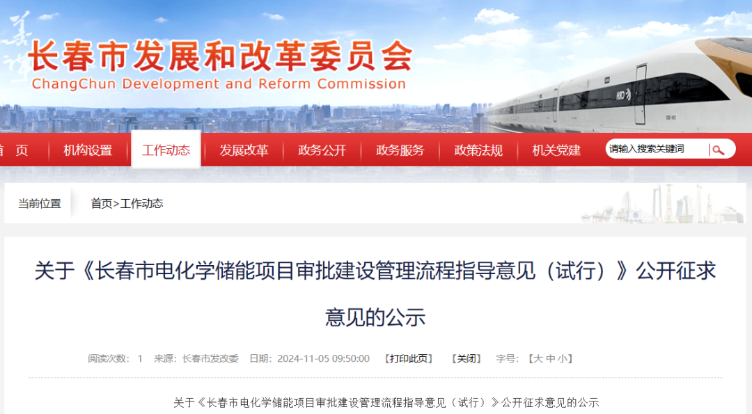 关于《长春市电化学储能项目审批建设管理流程指导意见(试行)》公开征求意见的公示