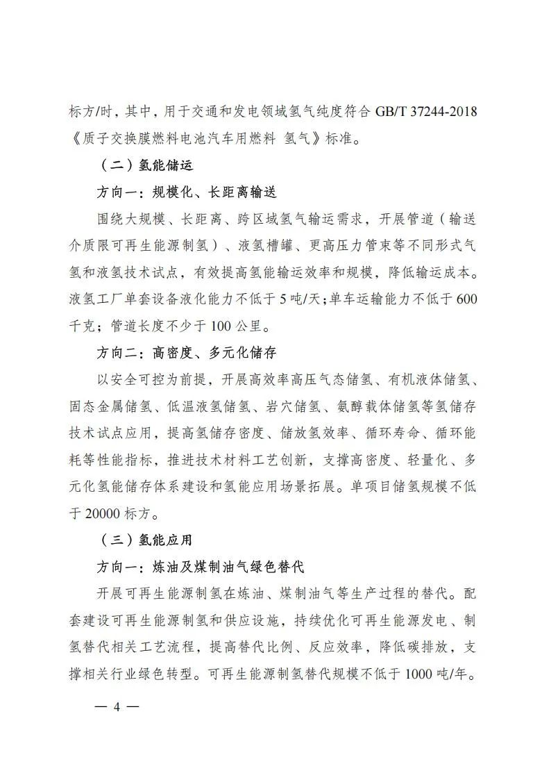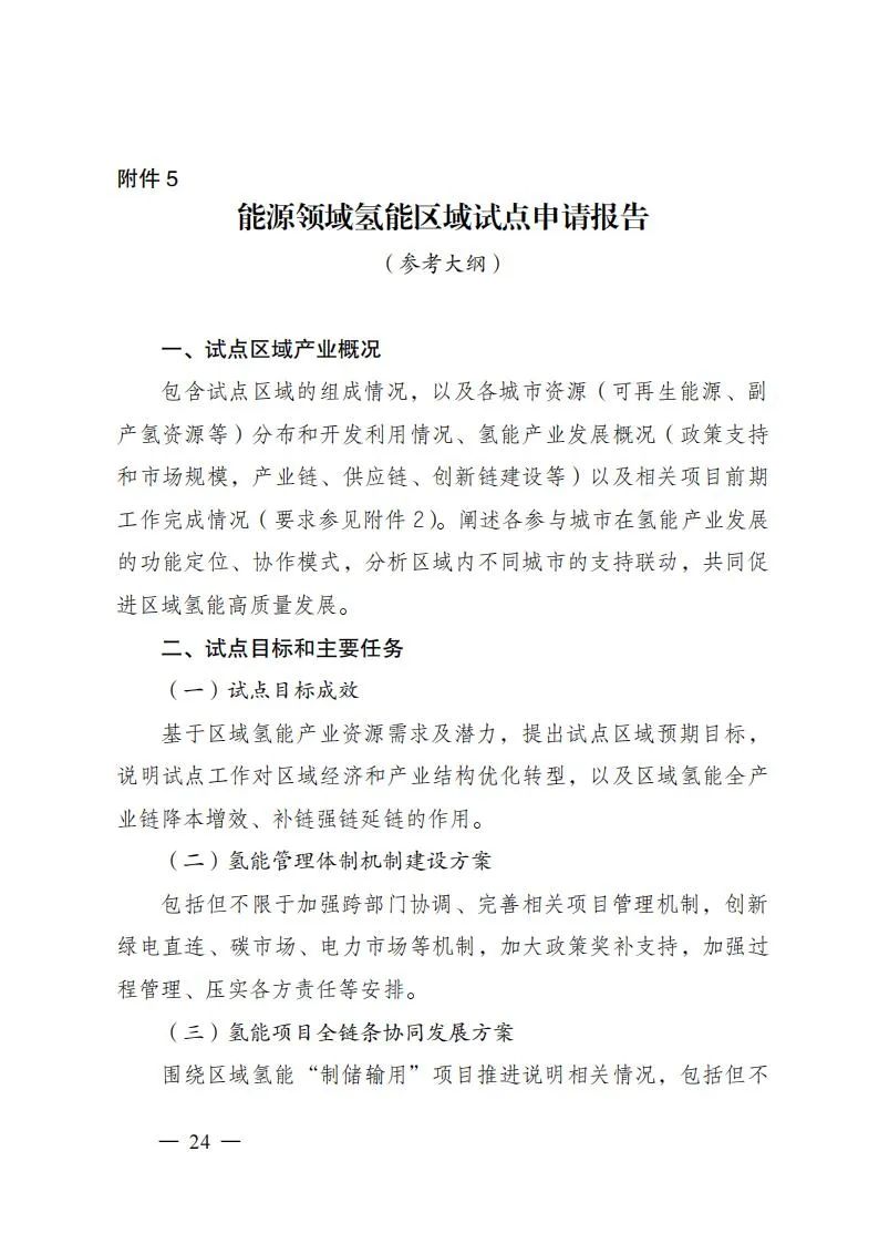 区域试点:依托区域试点推动建立健全氢能跨部门协作机制和管理模式,探索创新可持续的绿色价值实现机制,统筹衔接各类政策资源。区域试点由牵头城市进行申报,覆盖城市不超过3个,可统筹组织实施相关项目,覆盖氢能“制储输用”多个试点方向。相关城市应已系统开展氢能产业发展规划,供给消费规模效应明显,区域协调发展潜力突出,基础设施建设路径清晰,通过建立健全氢能项目管理规范,完善公共服务平台建设,探索可再生能源就近消纳和氢能绿色价值实现机制,发挥各类市场、各类资源对氢能产业的支撑作用。