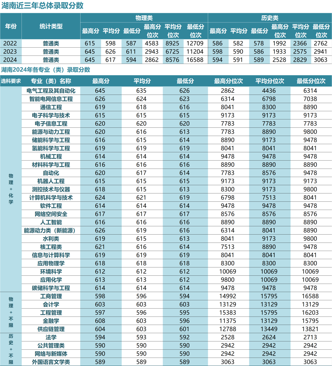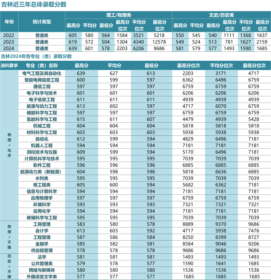 各省录取分数线