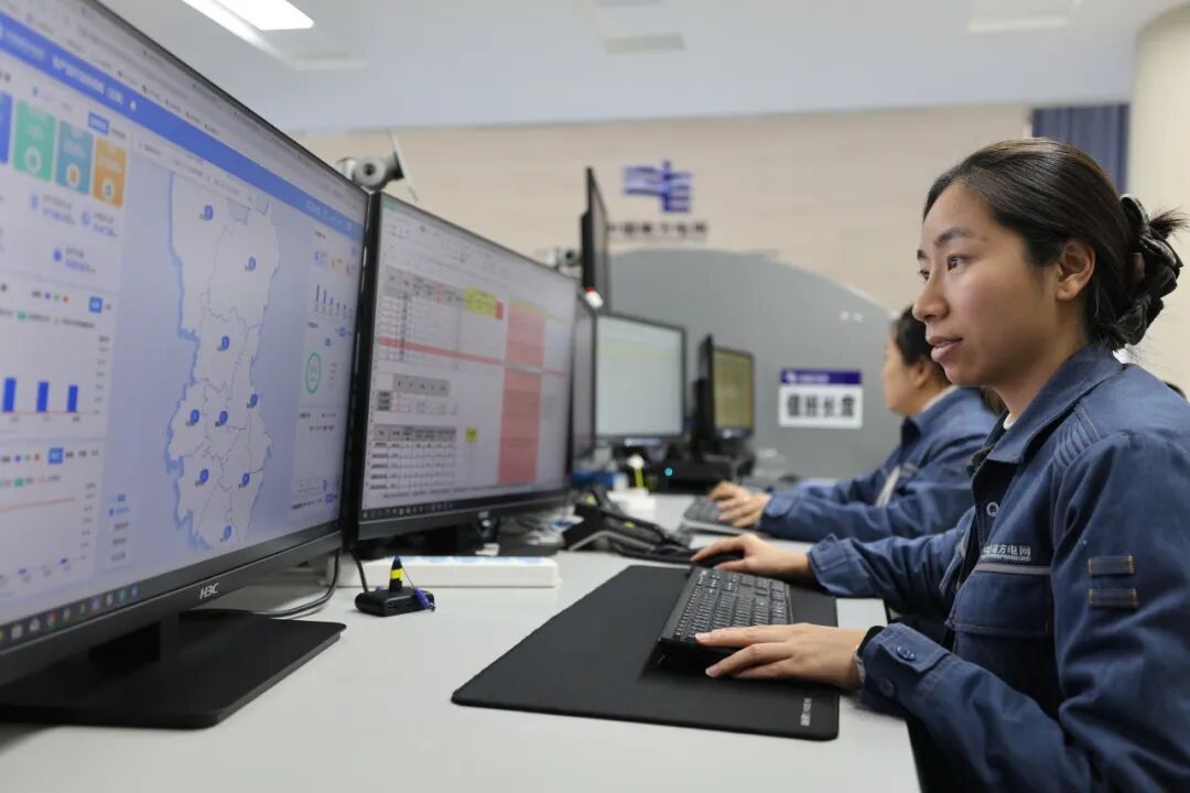 图:曲靖供电局生产指挥中心正在对现场作业情况及数据进行监测和管控