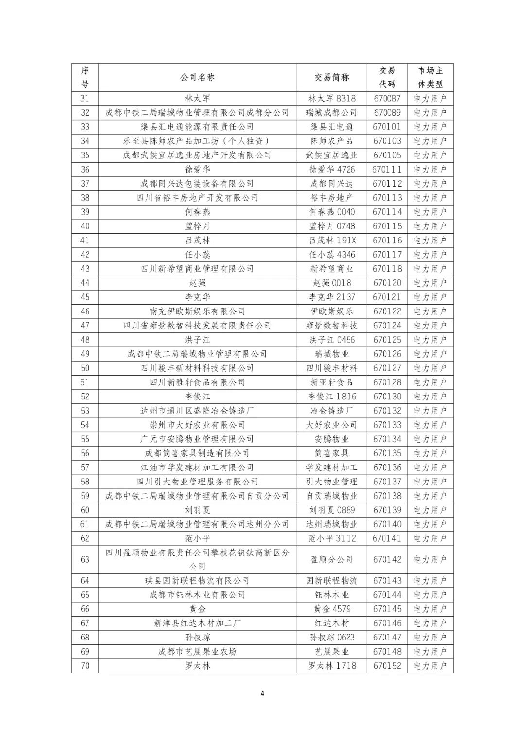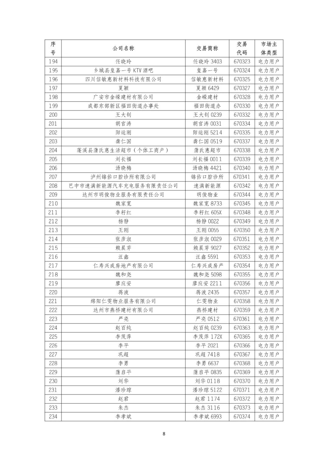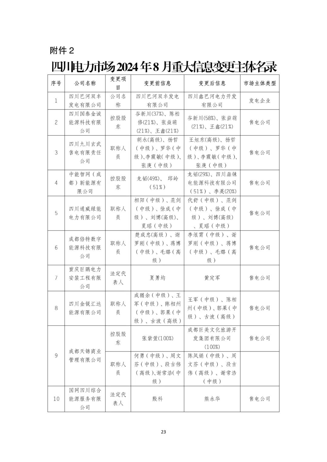 9月9日,四川电力交易中心发布《关于发布四川电力市场2024年8月注册、重大信息变更及注销市场主体名录的公告》。