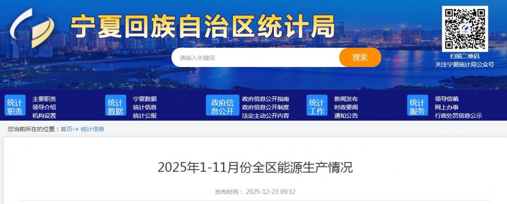 2月23日,宁夏回族自治区统计局发布2025年1-11月份全区能源生产情况。