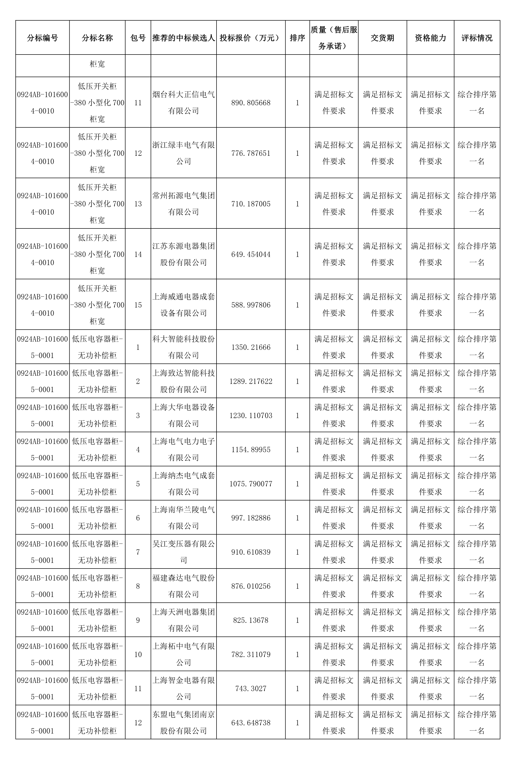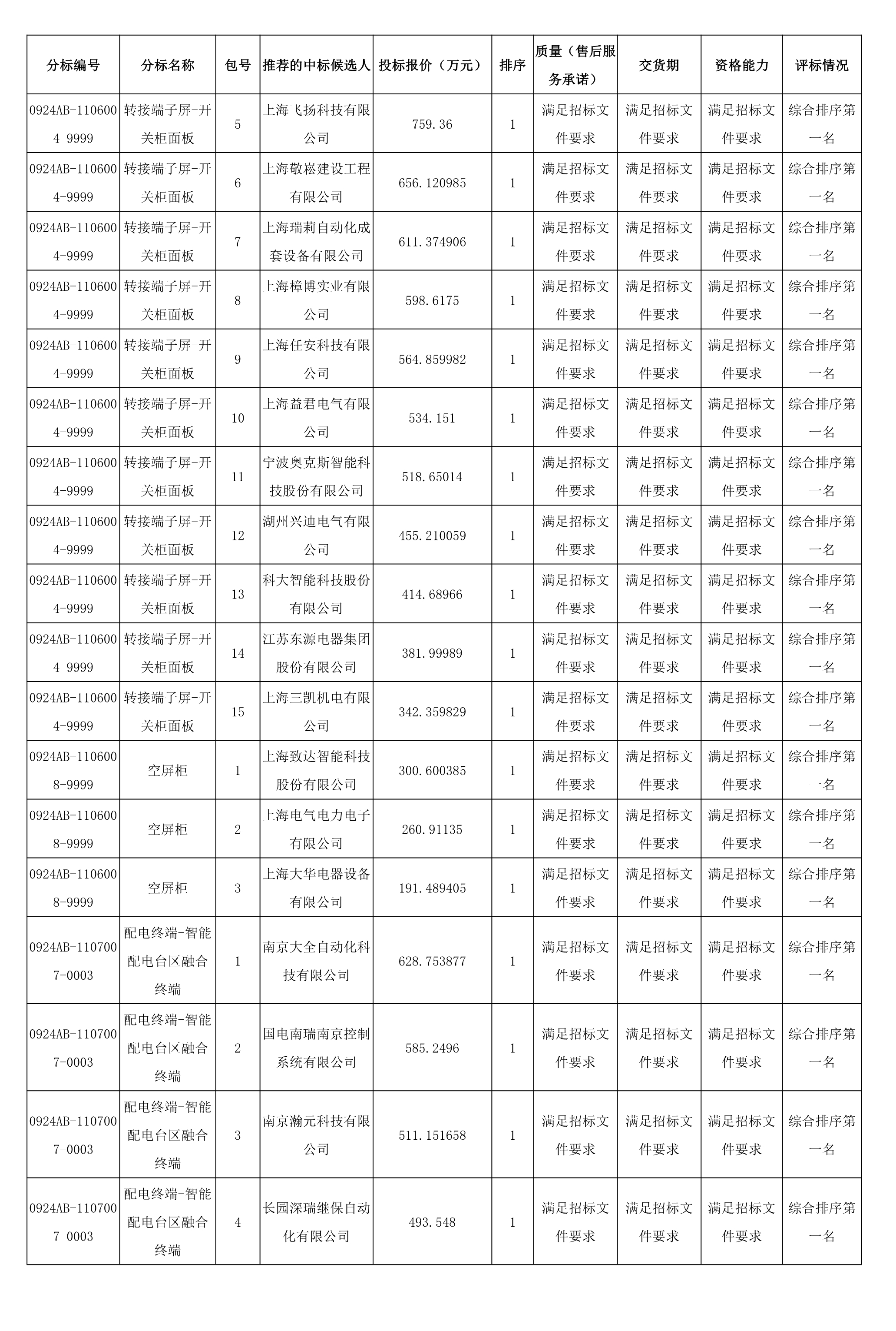国网上海市电力公司2024年第二次配网物资协议库存招标采购推荐的中标候选人公示