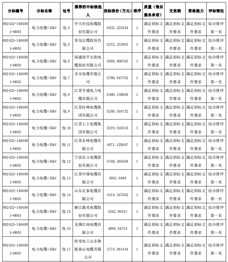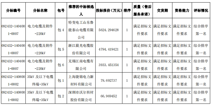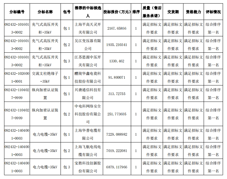 国网上海市电力公司2024年第二次用户接入工程物资协议库存招标采购推荐的中标候选人公示