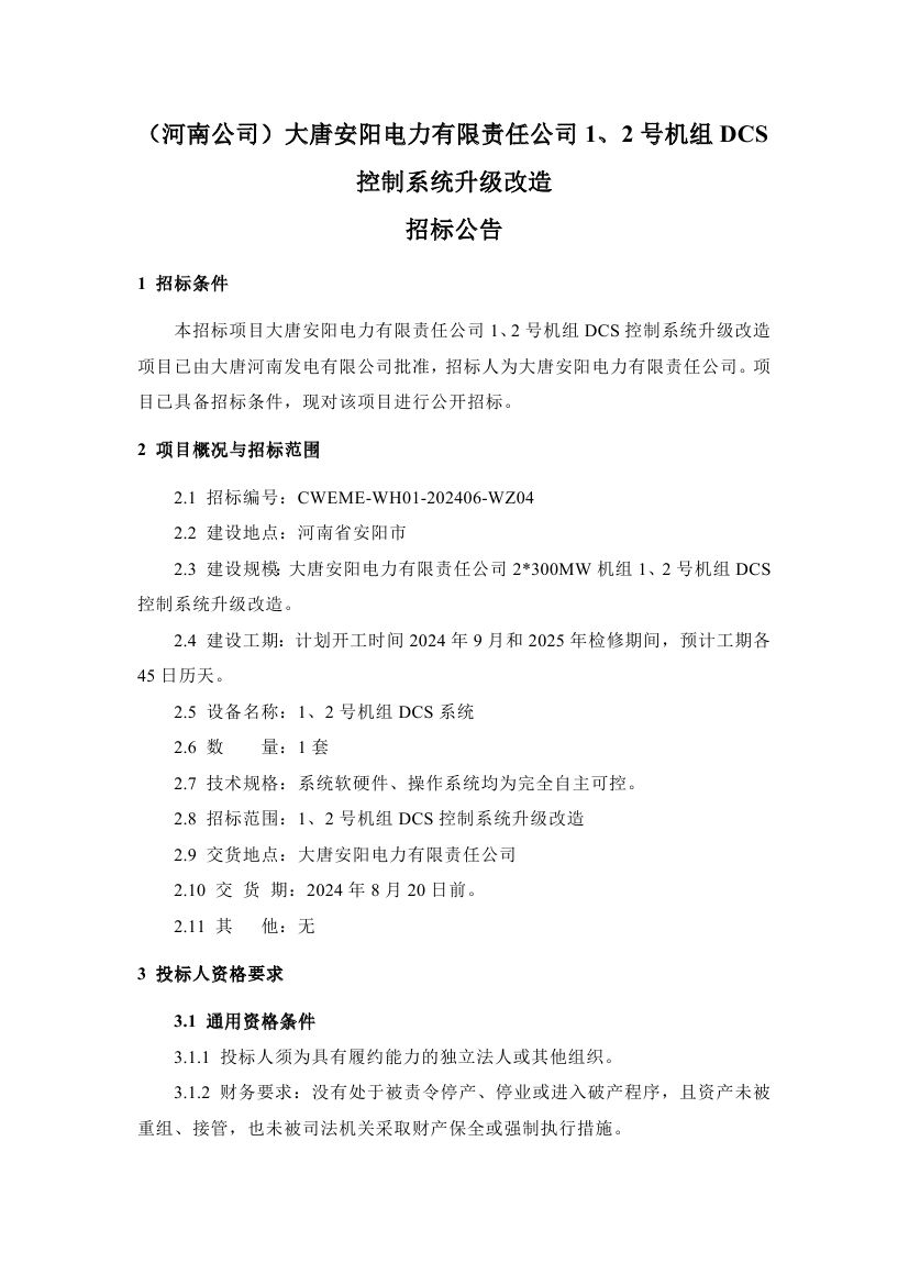 2.3 建设规模:大唐安阳电力有限责任公司 2*300MW机组 1、2号机组 DCS控制系统升级改造。
