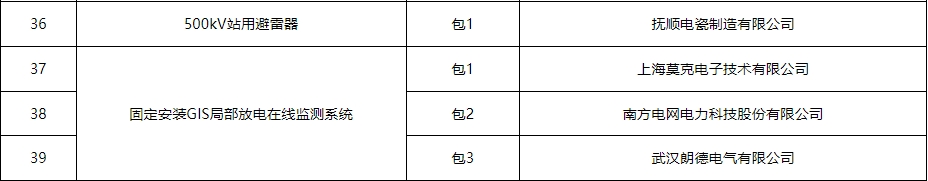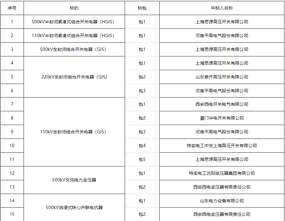 南方电网公司2024年主网一次设备第一批批次招标项目中标结果公告