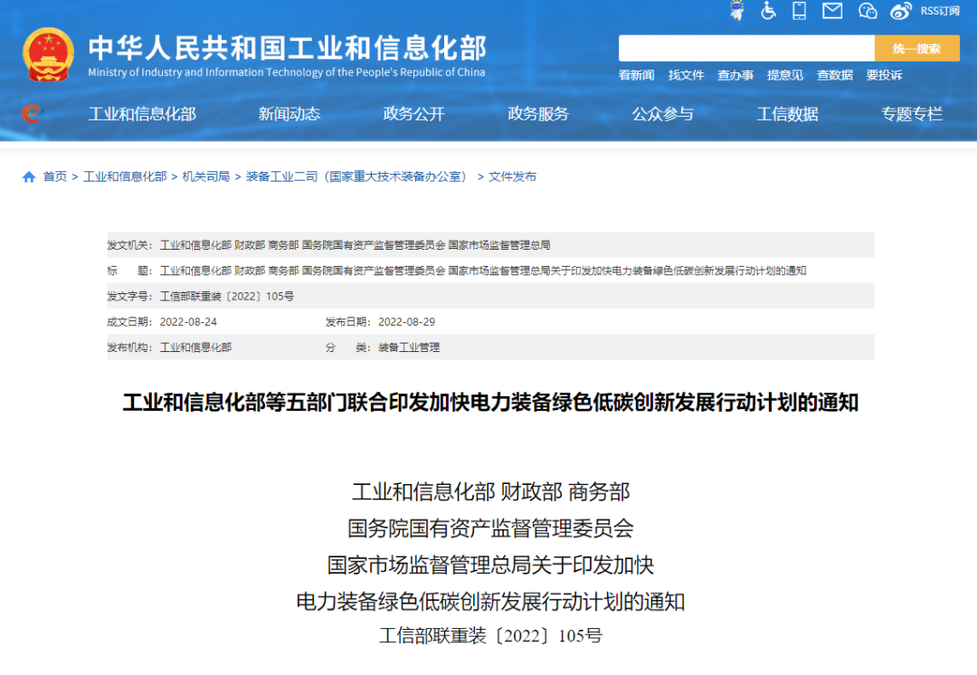 8 月 29 日,工信部等五部门联合印发《加快电力装备绿色低碳创新发展行动计划的通知》,目标通过5-8年时间,电力装备供给结构显著改善,煤电机组灵活性改造能力累计超过2亿千瓦,风电和太阳能发电装备满足12亿千瓦以上装机需求,核电装备满足7000万千瓦装机需求,并分别针对电力装备绿色化、装备技术提升和应用模式给出了指导意见。