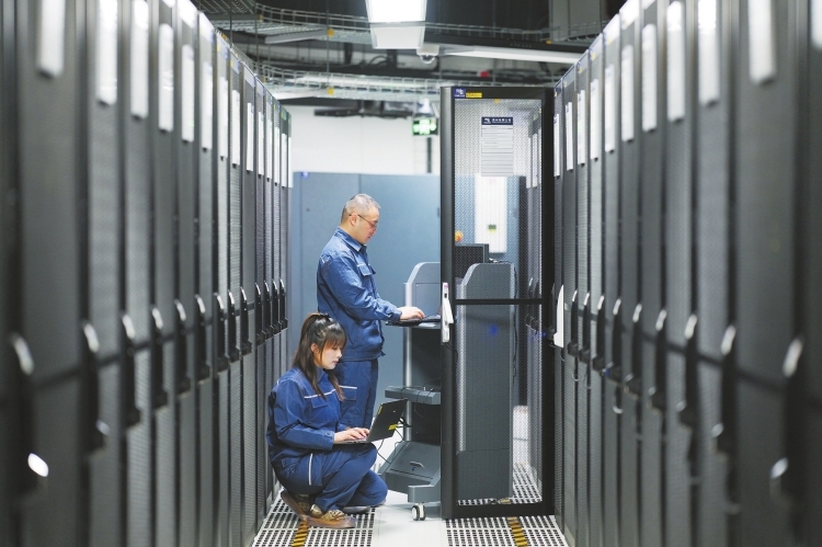 在信息机房里,贵州电网公司信息中心工作人员开展网络安全计划检修工作。潘聪 龙定锦 摄