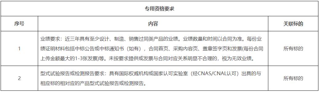 2.如包内存在不同类别的设备材料,投标人须分别满足包内各类别设备材料的商务资格及技术要求方可视为满足此包的资格要求。