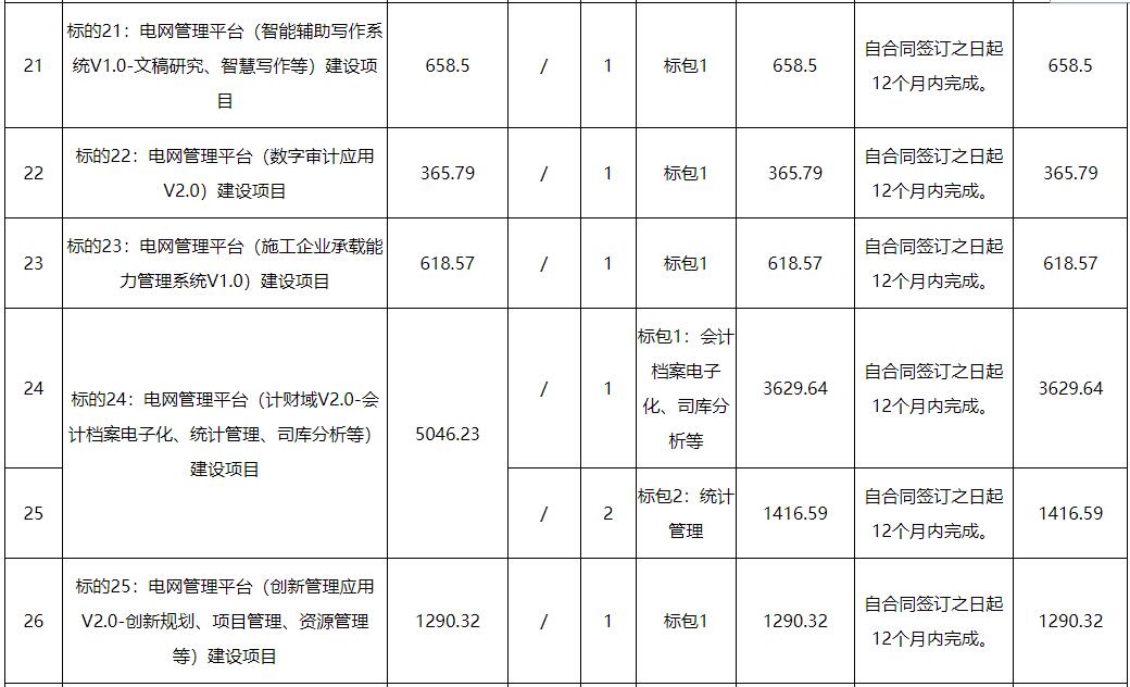 标的27∶电网管理平台(电网安全生产应用V2.0-营配调协同支撑能力优化与供电可靠性提升应用)建设项目标的28:电网管理平台(合同管理应用V2.0-智能文本管理、签订管理等优化完善)建设项目