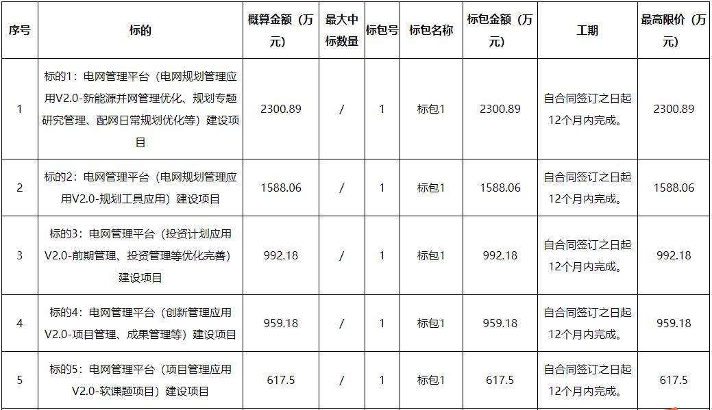 标的1:电网管理平台(电网规划管理应用V2.0-新能源并网管理优化、规划专题研究管理、配网日常规划优化等)建设项目