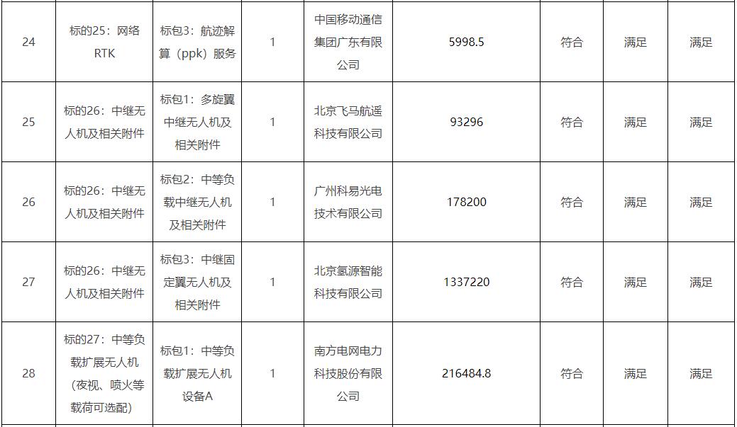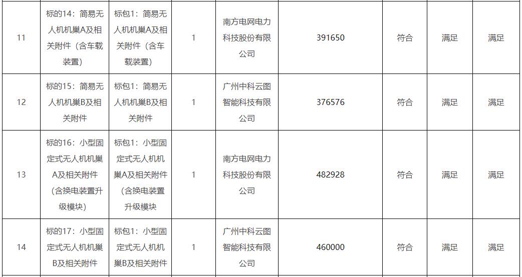 南方电网2023年第一批无人机设备及相关附件框架采购项目中标公示