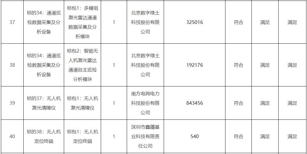 南方电网2023年第一批无人机设备及相关附件框架采购项目(招标项目编号:CG3800022001589283),经评标委员会评审,现将中标候选人公示如下: