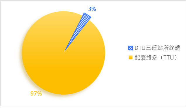 配电终端共1652套,其中包含1602套TTU,50套DTU三遥站所终端,具体占比如下: