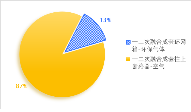 一二次融合成套设备共4139套,其中包含3604套一二次融合成套柱上断路器-空气、535套一二次融合成套环网箱-环保气体,招标数量分布占比如下: