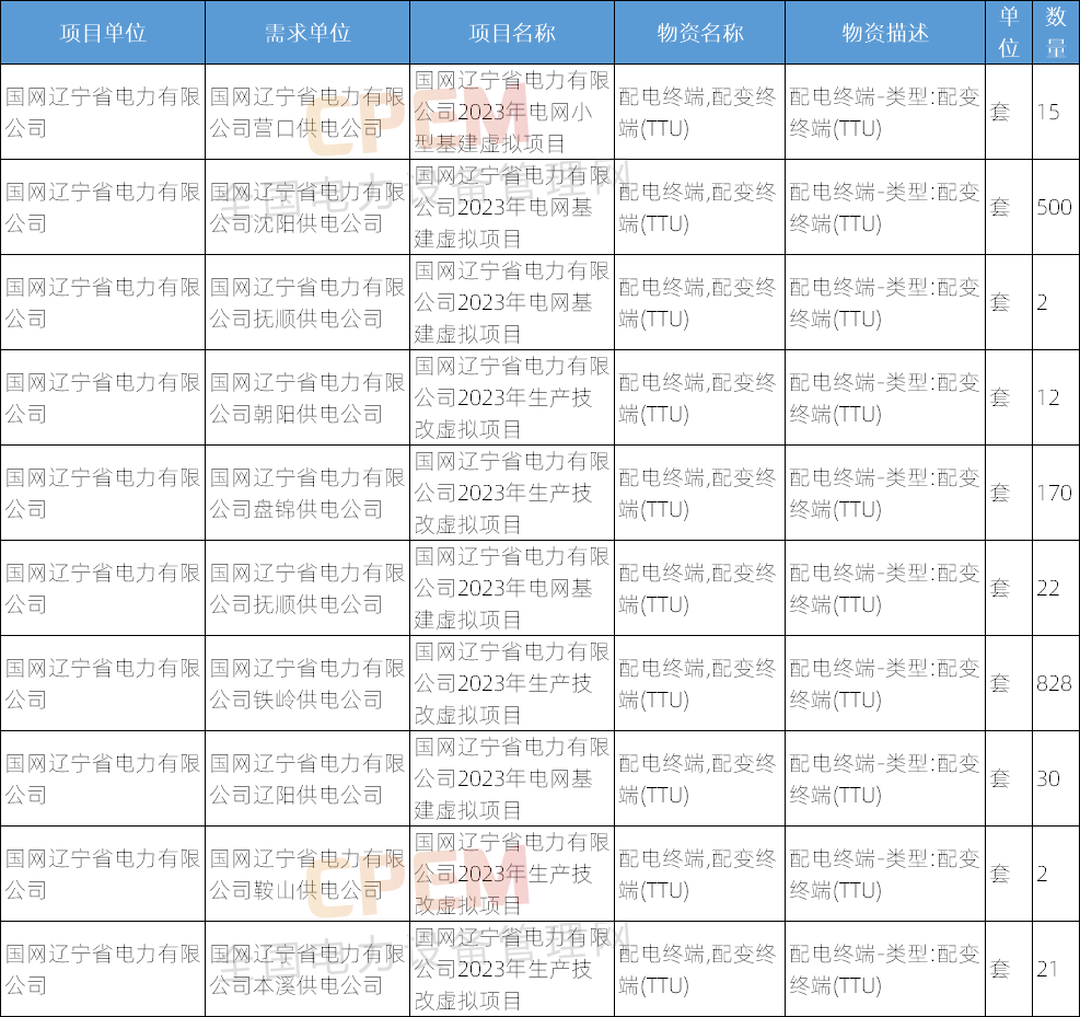 国网辽宁省电力有限公司发布“2023年第二次配网物资协议库存公开招标采购项目”共发布了55类物资招标。小编根据原招标文件将配电数字化相关物资数量整理如下: