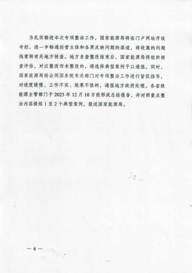 《通知》指出,整治方式包括,开展自查自纠。各省级能源主管部门对照本方案要求,全面开展自查自纠工作。主管部门应制定具体整治工作方案,并在本部门门户网站开设专栏,收集问题线索进行核查。