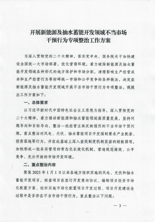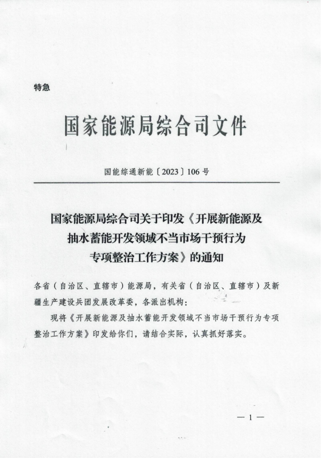 近日,国家能源局综合司发布关于印发《开展新能源及抽水蓄能开发领域不当市场干预行为专项整治工作方案》的通知。
