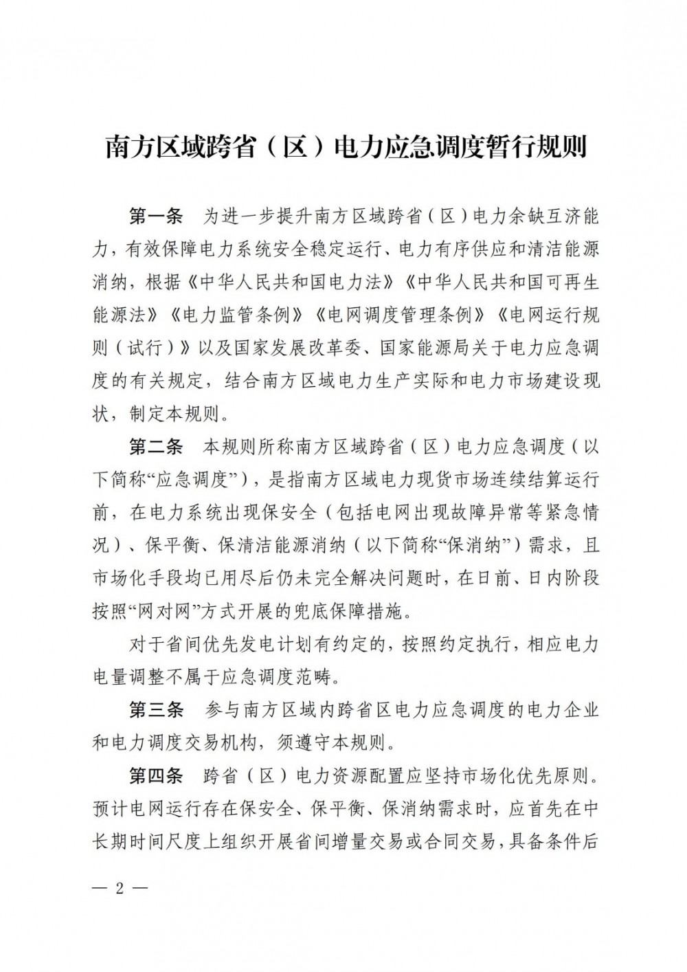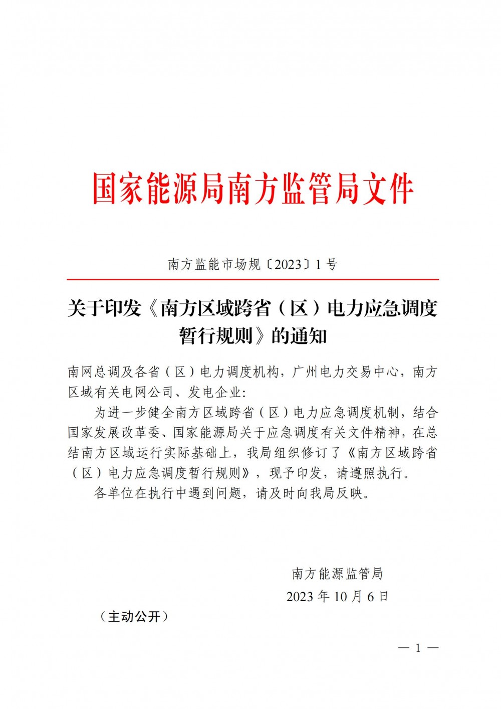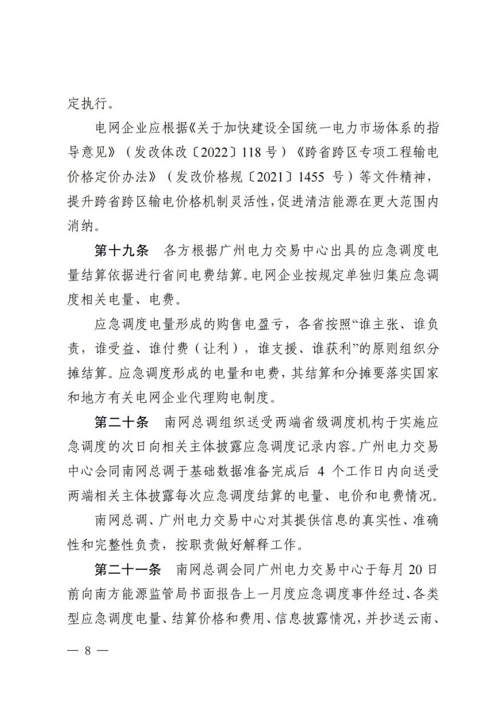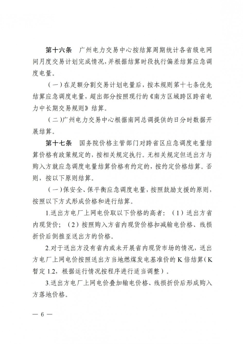 10月8日,南方能源监管局印发实施《南方区域跨省 (区)电力应急调度暂行规则》提出,为进一步健全南方区域跨省(区)电力应急调度机制,保消纳应急调度电量,按照鼓励消纳的原则,送出方电厂上网电价按照购入方省内现货价扣减输电价格、线损折价后倒推至送出方的价格,购入方没有省内现货价格或未开展省内现货市场的,送出方电厂上网电价按照购入方当地燃煤发电基准价的 K 倍结算扣减输电价格、线损折价后倒推至送出方的价格结算。