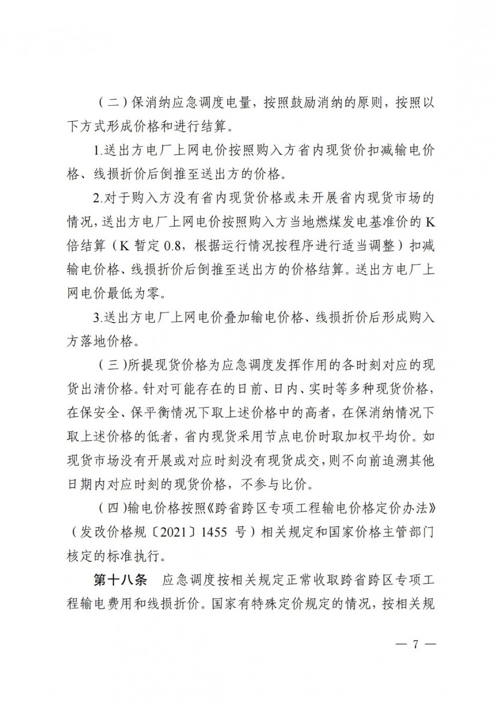 保消纳应急调度电量,按照鼓励消纳的原则,按照以下方式形成价格和进行结算。