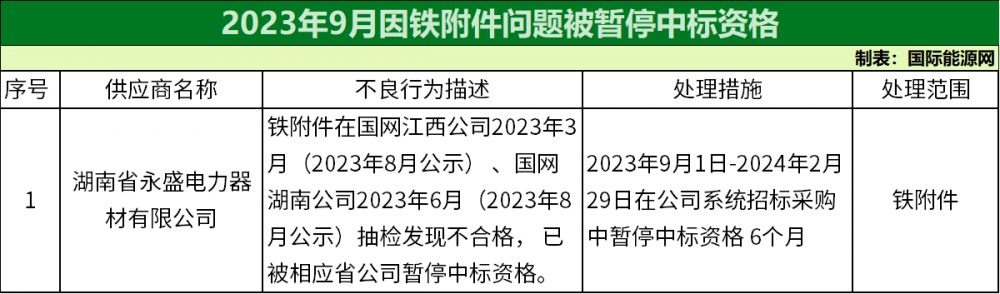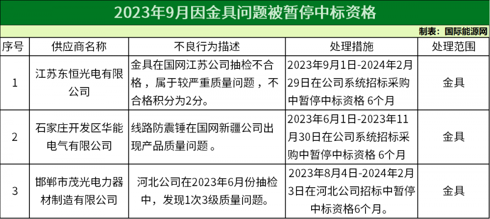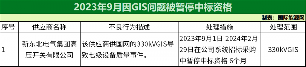 新东北电气集团高压开关有限公司:该供应商供国网的330kVGIS导致七级设备质量事件,被暂停中标资格 6个月;
