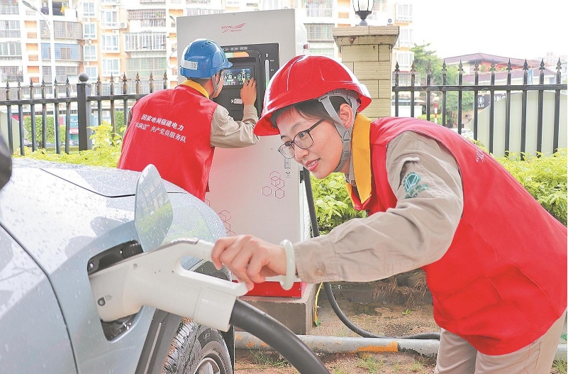 厦门供电公司员工巡检V2G充电桩。叶成才 摄
