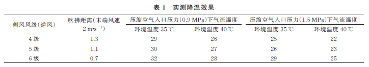 经试验,在4级中风与40℃的高温条件下,可以实现1.3m距离外22℃的低温送风,对于现场户外带电作业的施工人员,可带来极大的舒适度,极大地降低了夏季不停电作业人员出现中暑昏厥的可能性,对于提高夏季不停电作业的安全性意义重大。