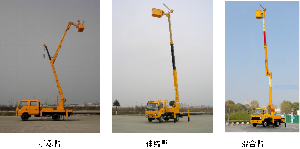 根据绝缘斗臂车工作臂的形式,可分为折叠臂式、直伸臂式、多关节臂式、垂直升降式和混合式。