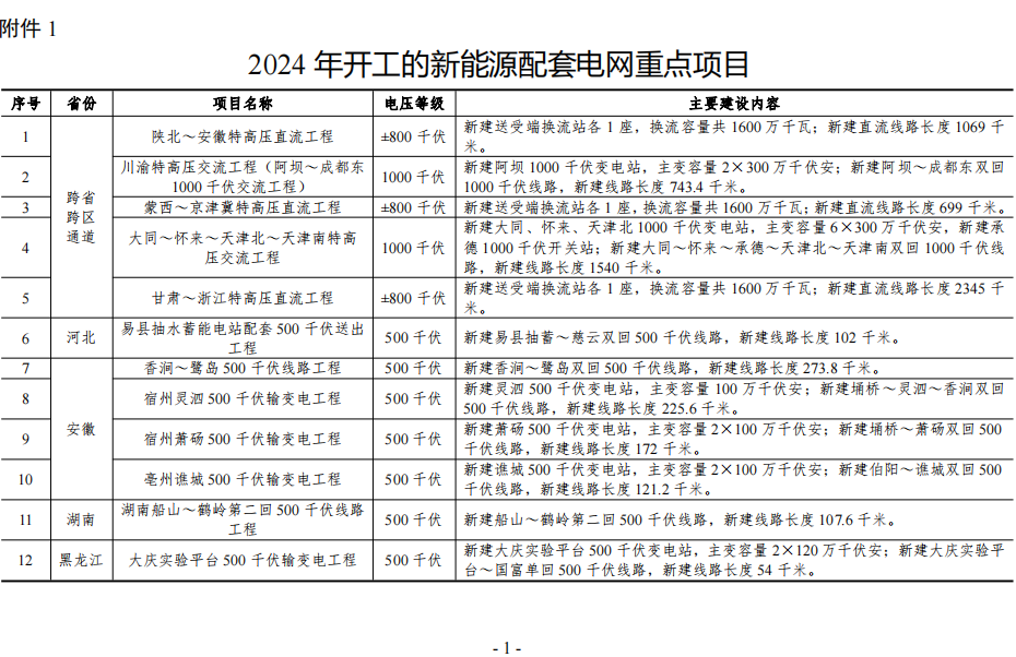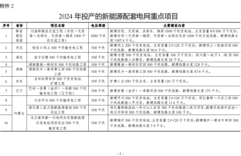 1. 2024年开工的新能源配套电网重点项目