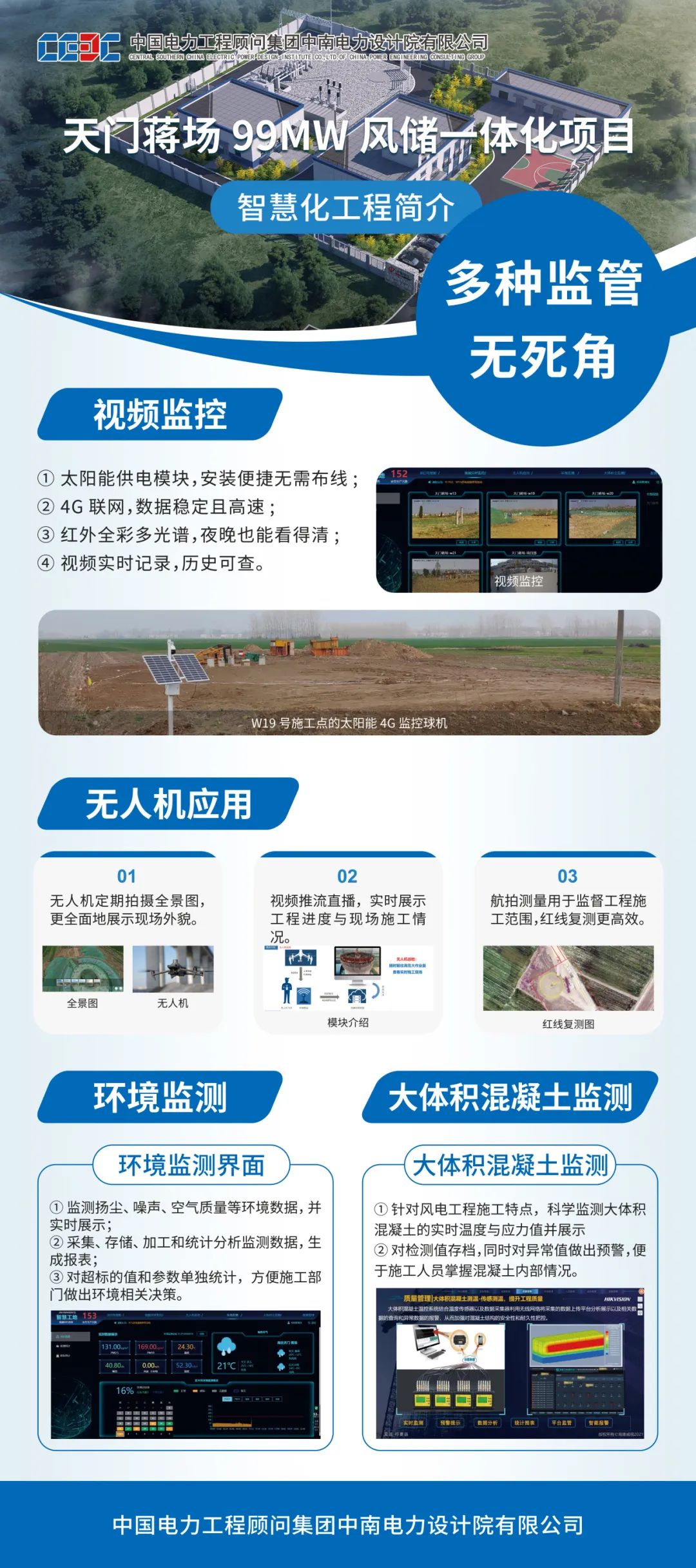 工程还采用固定球机、全景相机、无人机等方式开展施工现场监控,通过智能分析技术及时发现现场违章行为。