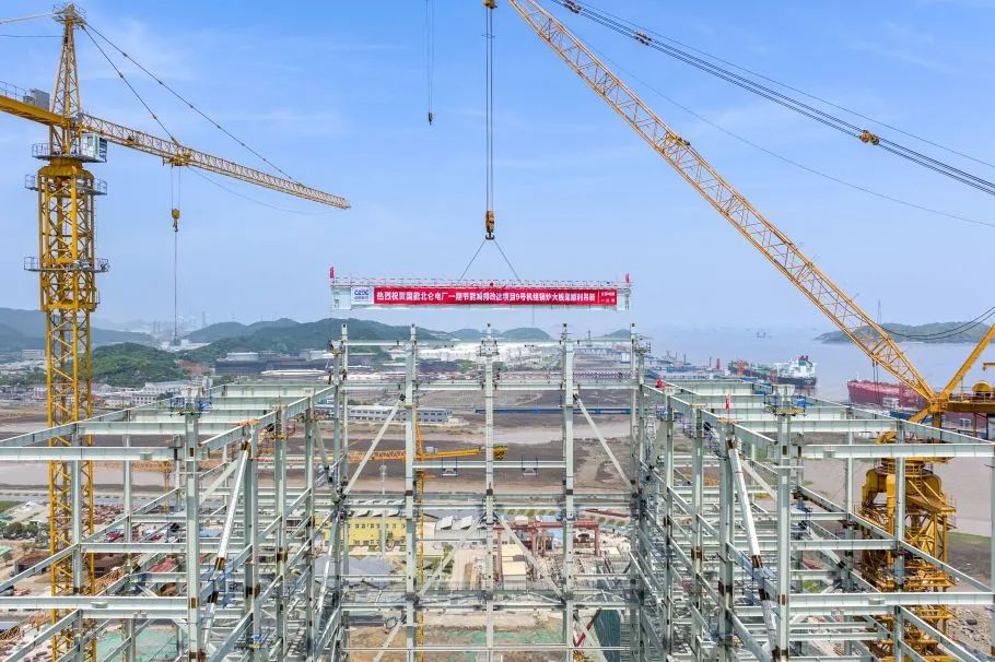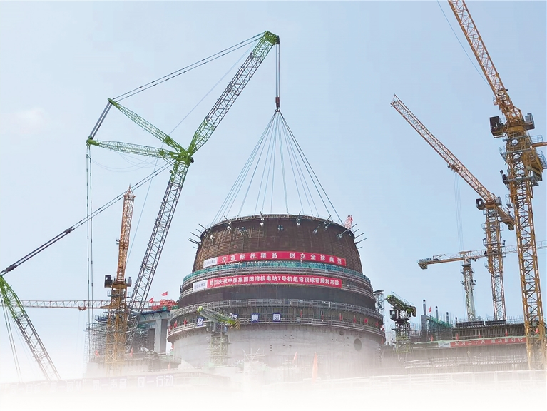 图:田湾核电7号机组穹顶球带成功吊装。张驰 摄