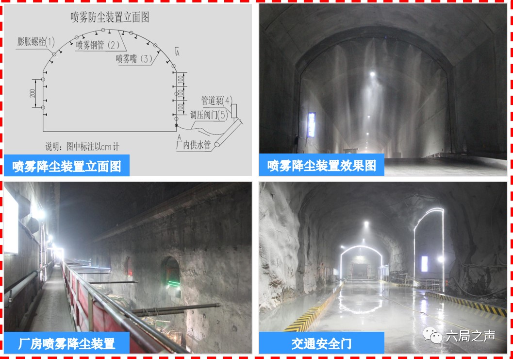 特大地下洞室群安全、高效、优质、绿色、环保施工:研发了地下洞室通风参数控制系统,实现了通风循环系统和排烟技术的动态控制,提高了通风调控效率,解决了复杂洞井群施工期通风散烟难题。研制了地下洞室喷雾降尘装置,净化了洞内施工环境,改善了施工作业条件,实现了绿色环保施工。研发了废水循环再利用系统,保障了废水循环利用的可持续运行,避免了饮用水源污染引发的生态环境问题。