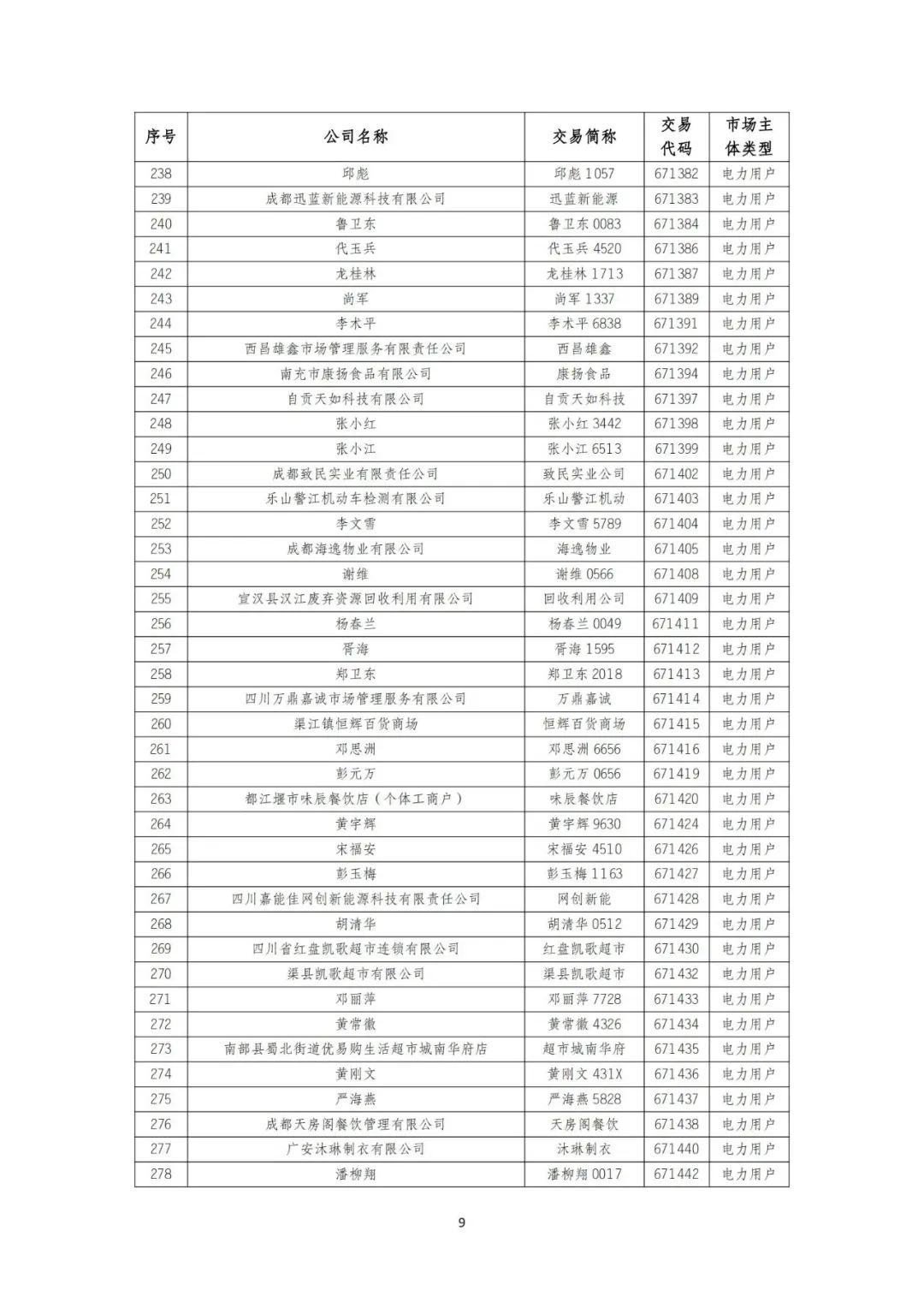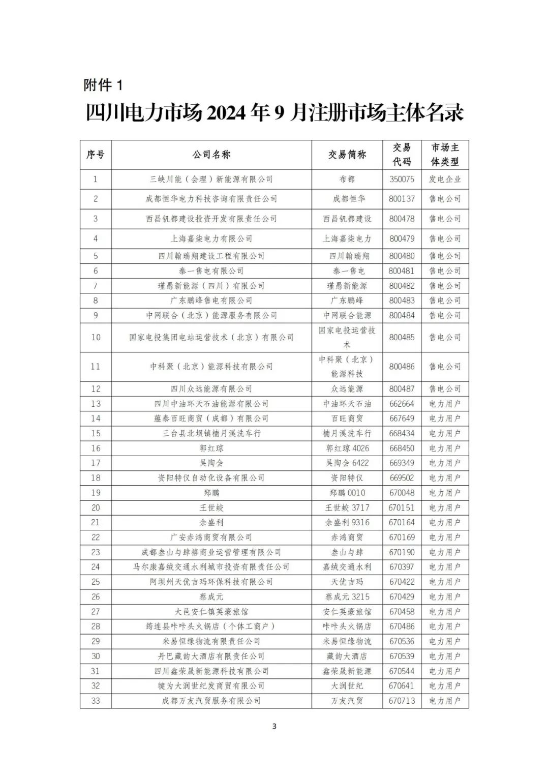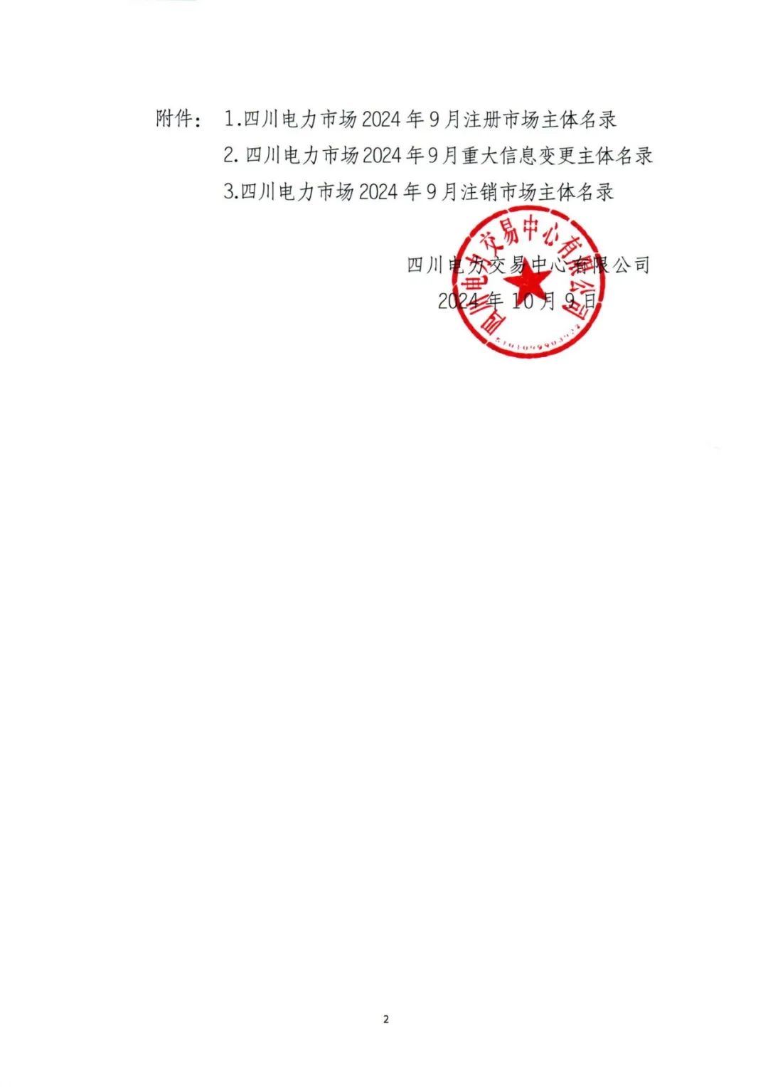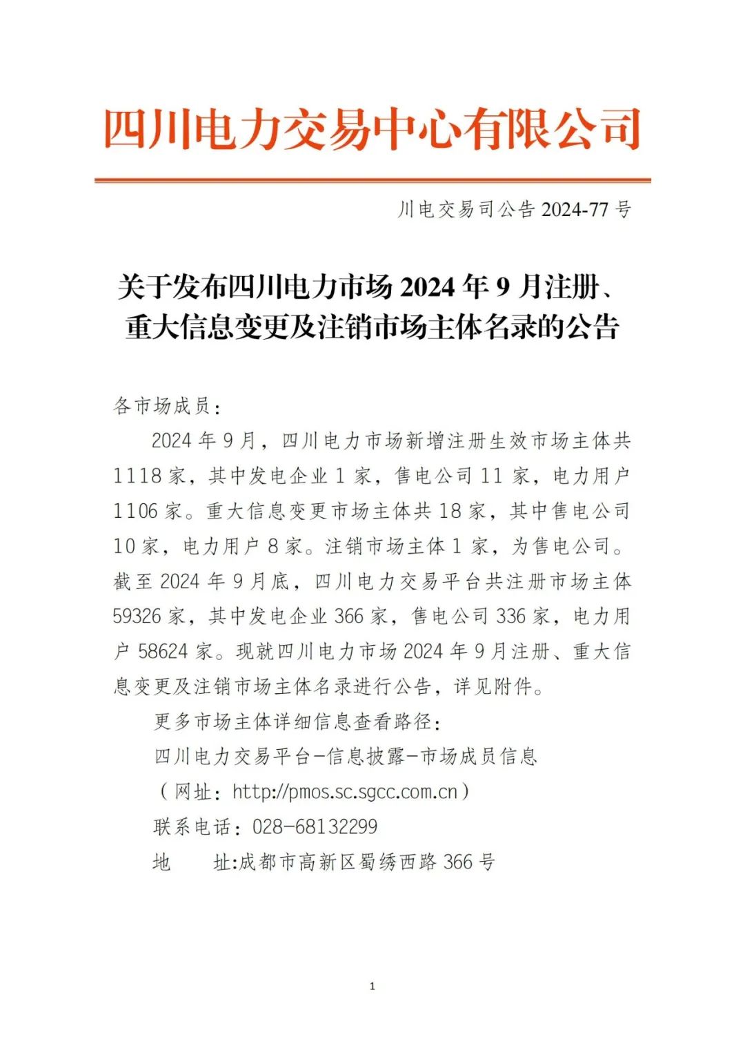 10月9日,四川电力交易中心发布《关于发布四川电力市场2024年9月注册、重大信息变更及注销市场主体名录的公告》。
