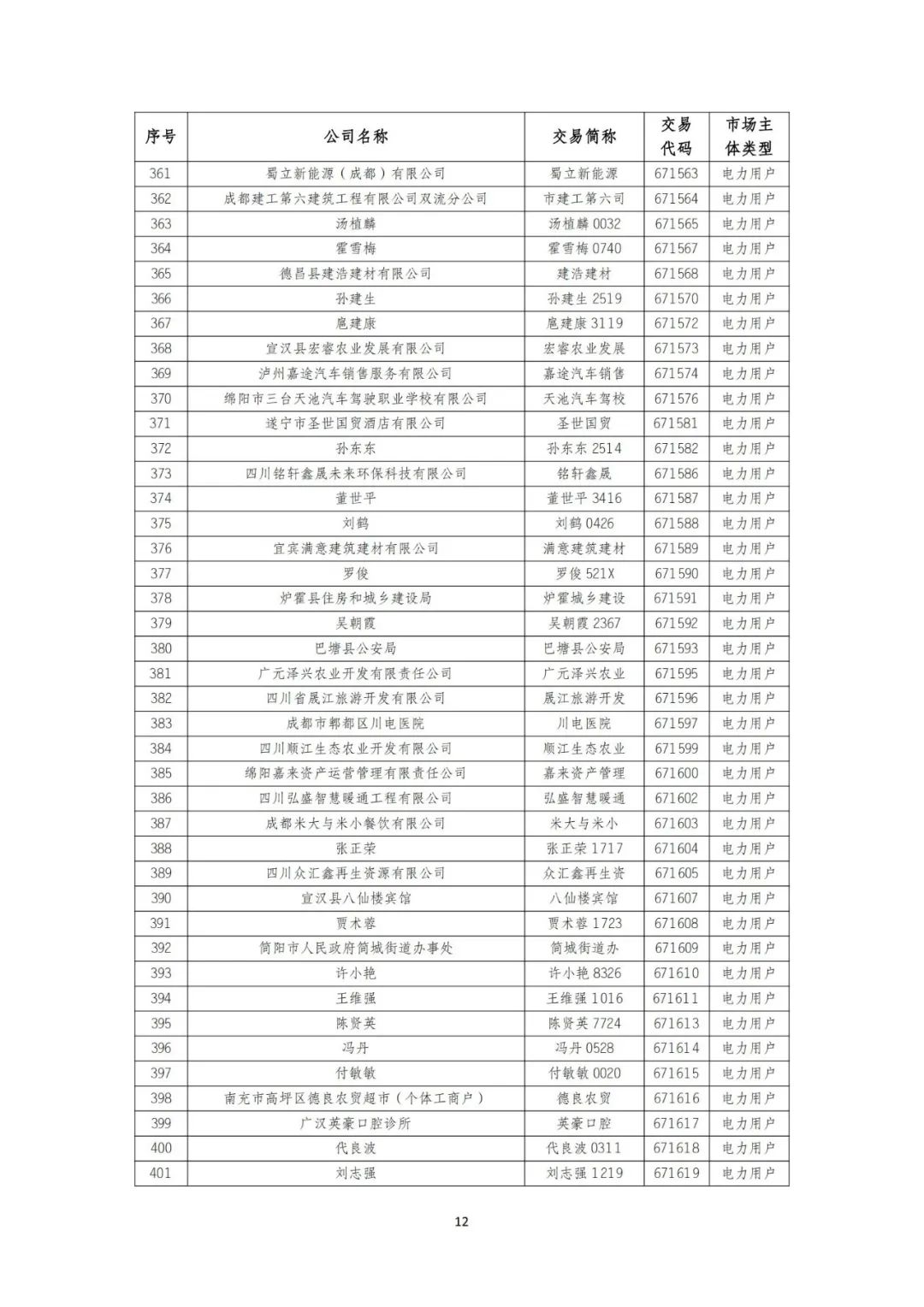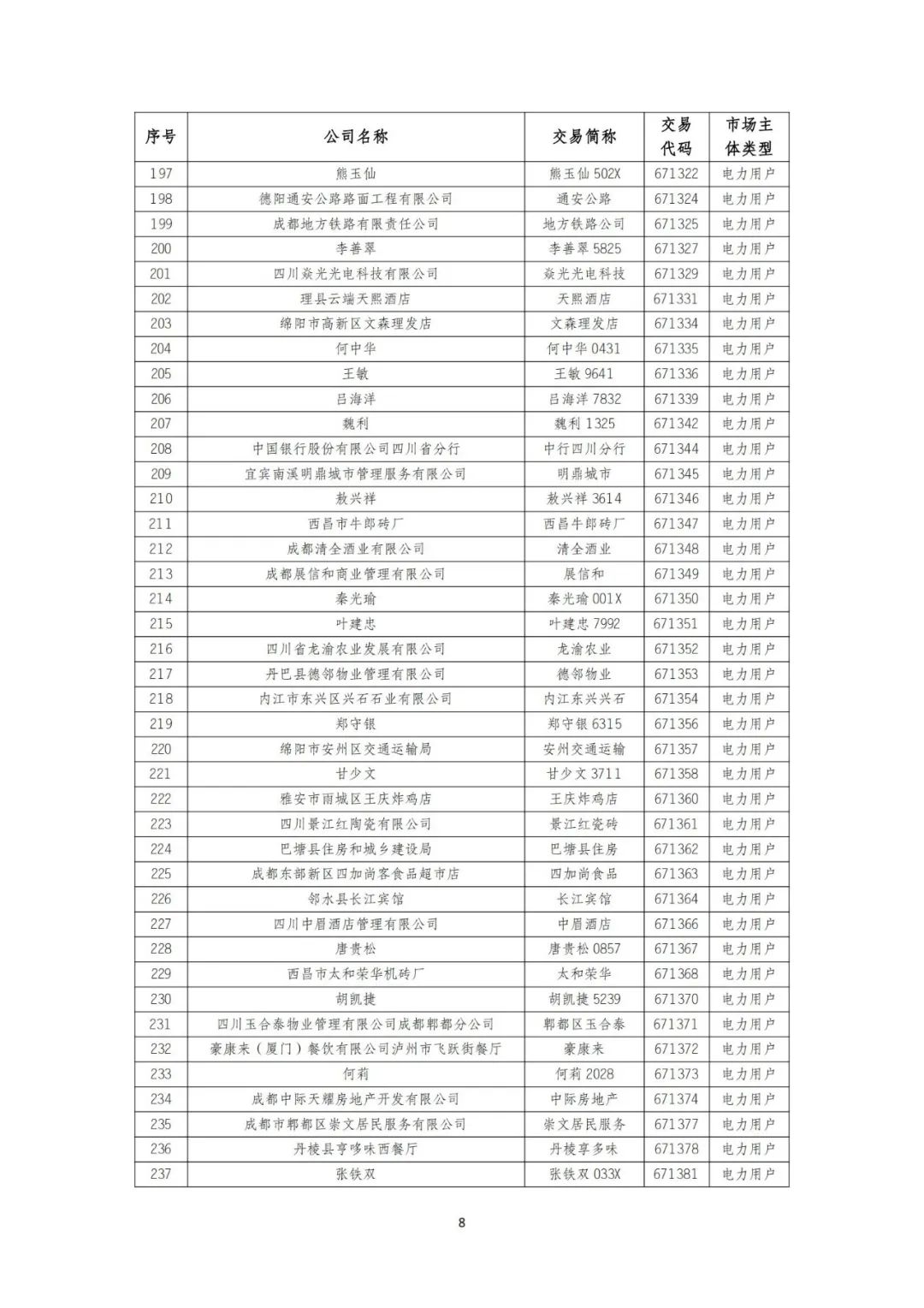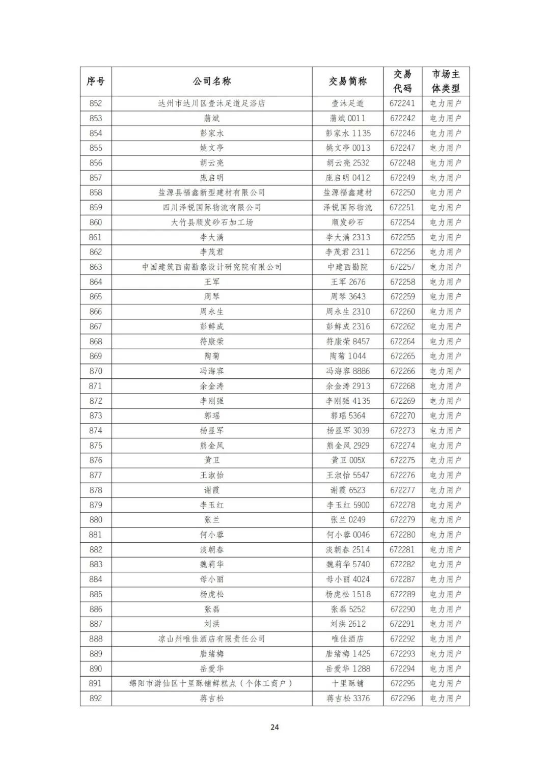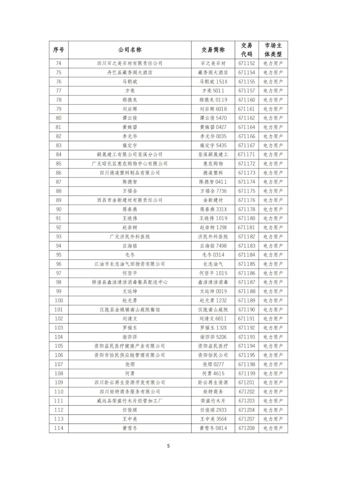 10月9日,四川电力交易中心发布《关于发布四川电力市场2024年9月注册、重大信息变更及注销市场主体名录的公告》。
