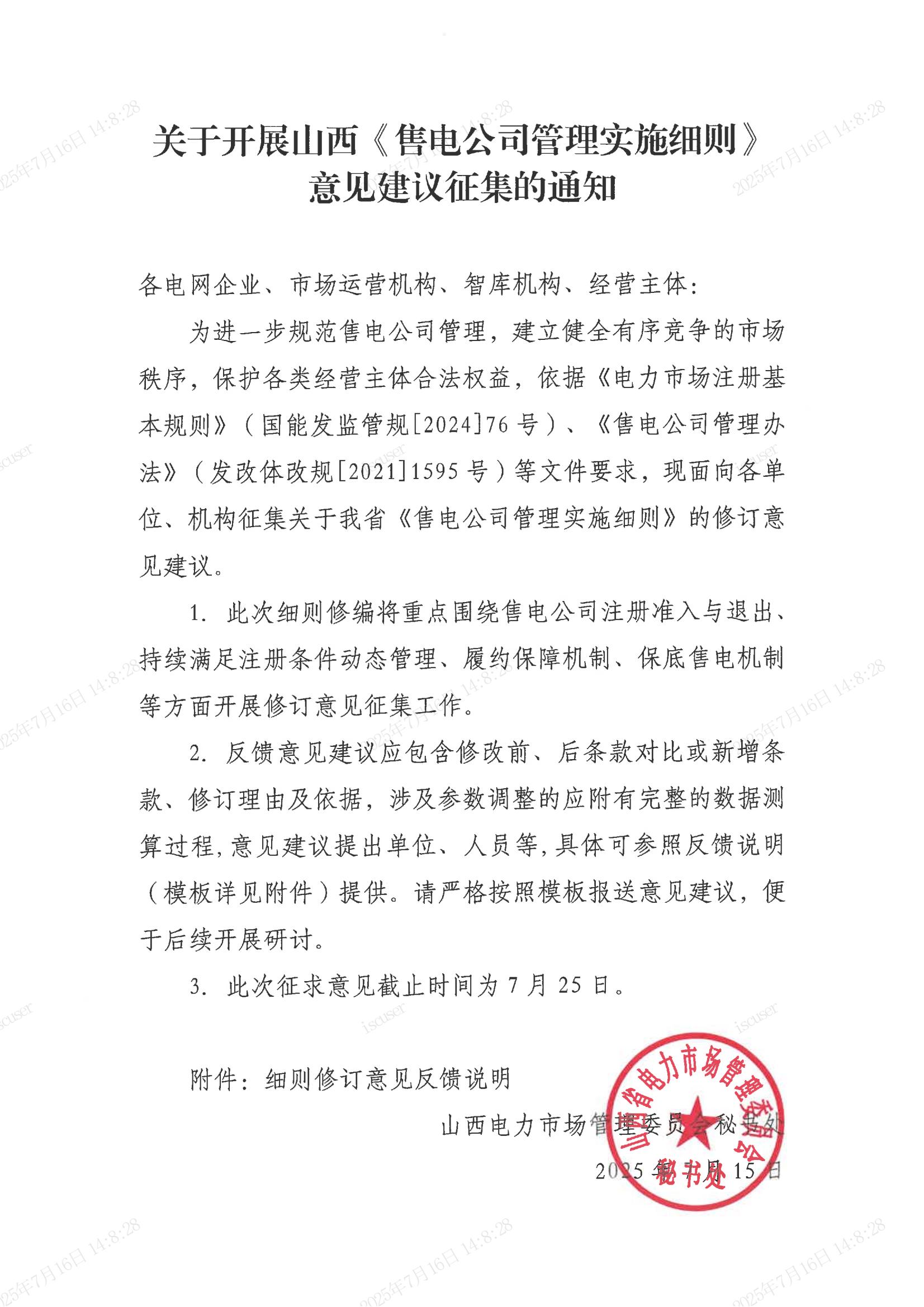 7月15日,山西电力交易中心发布关于开展山西售电公司管理实施细则意见建议征集的通知,此次细则修编将重点围绕售电公司注册准入与退出、持续满足注册条件动态管理、履约保障机制、保底售电机制等方面开展修订意见征集工作。