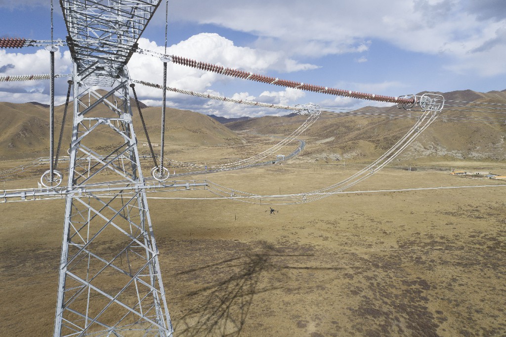 10月25日,在甘肃省甘南藏族自治州碌曲县境内,国网甘肃超高压公司采用国内首创的无人机验电、装拆接地线装置,成功在±800千伏青豫特高压直流线路停电检修中开展验电、装拆接地线作业,以科技手段代替传统作业,不断提升工作效率和人员安全,持续护航特高压大动脉安全畅通再添新技术。