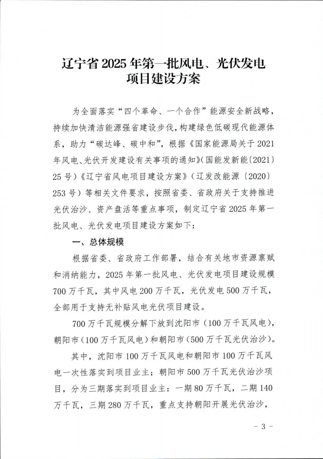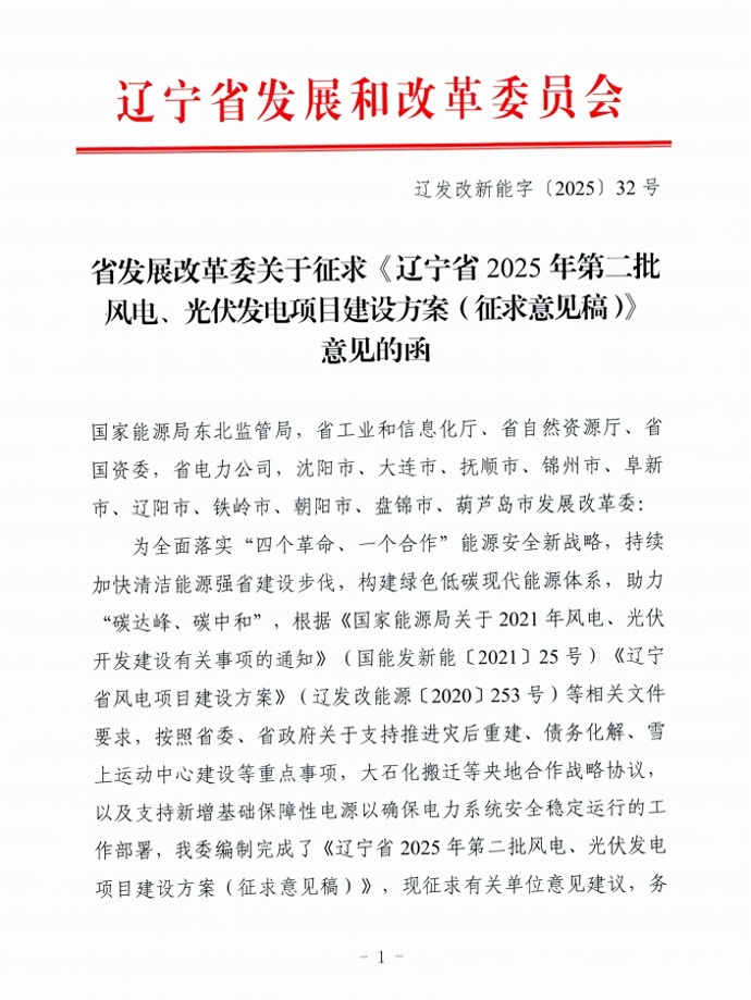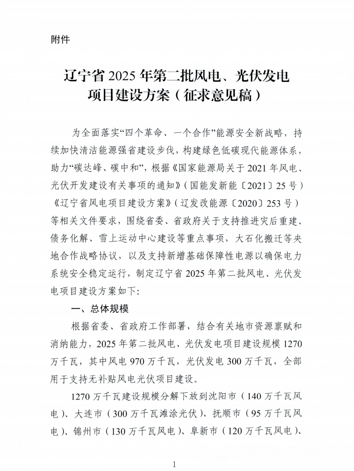 近日,辽宁发改委发布2025年第一批风光发电项目建设方案及第二批风电、光伏发电项目建设方案(征求意见稿),两批总规模合计19.7GW。