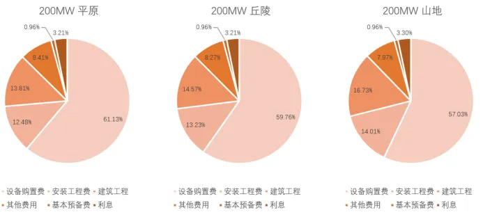 图1:不同装机容量、地形造价构成