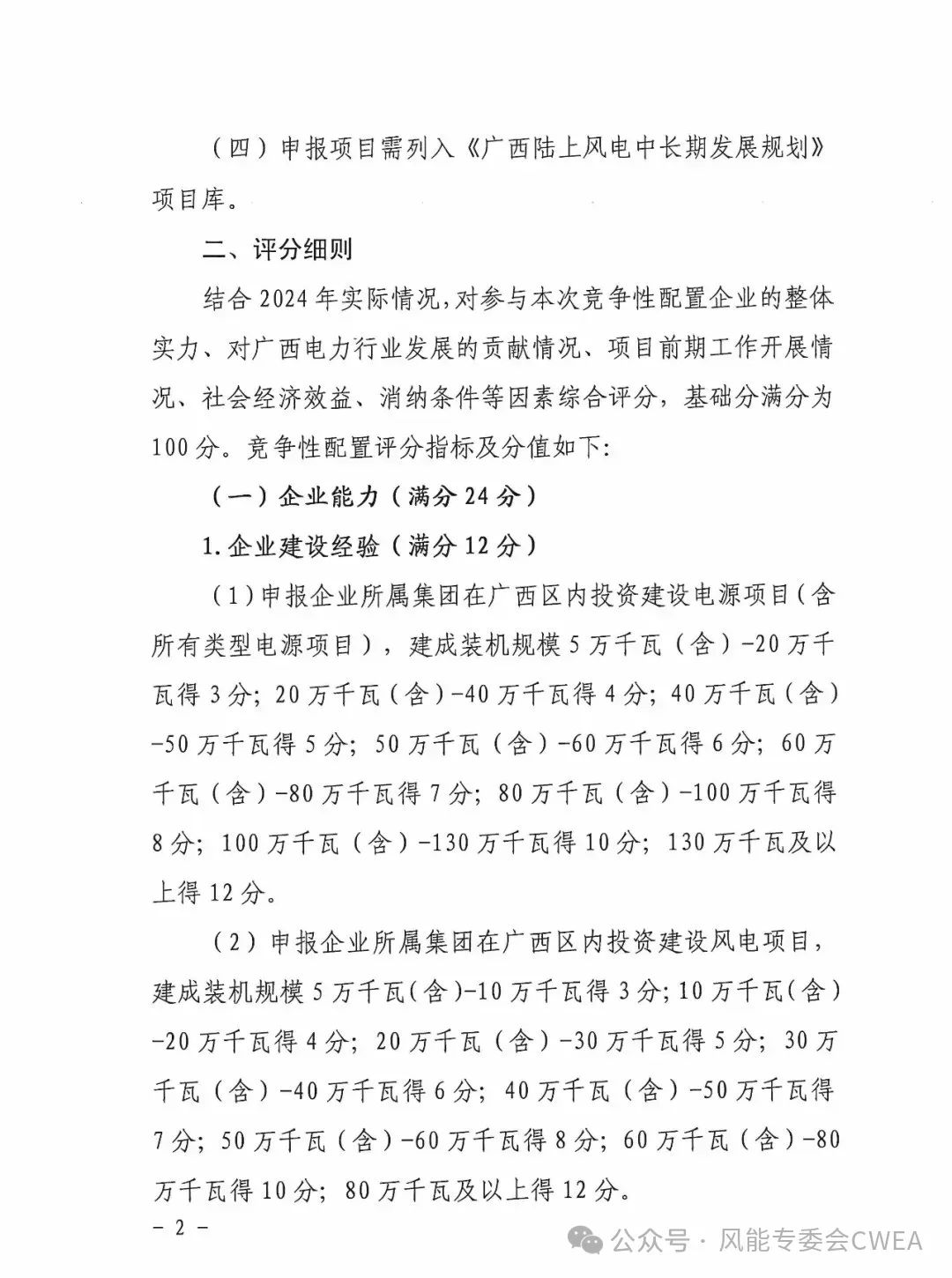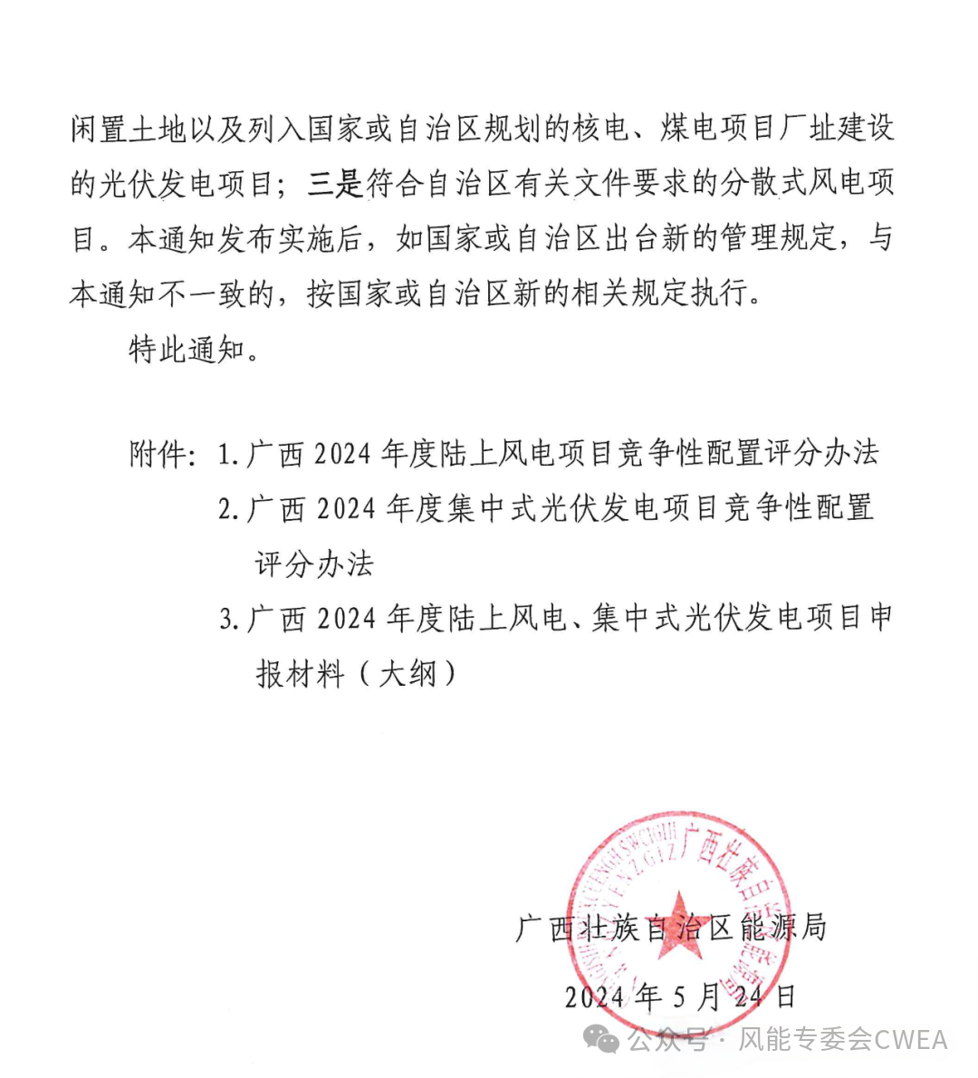 《广西2024年度陆上风电项目竞争性配置评分办法》全文如下: