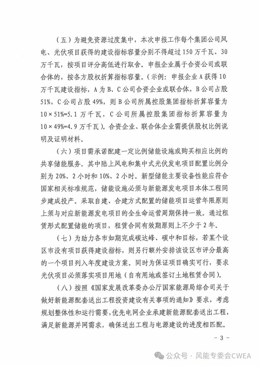 通知规定,企业可单独或以联合体形式进行申报。每个联合体成员单位不超过两家,必须有一家为控股方。为避免资源过度集中,每个集团公司风电、光伏项目获得的建设指标容量分别不得超过150万千瓦、30万千瓦,按项目评分高低进行取舍。申报企业属于合资公司或联合体的,按各方股权折算指标容量。