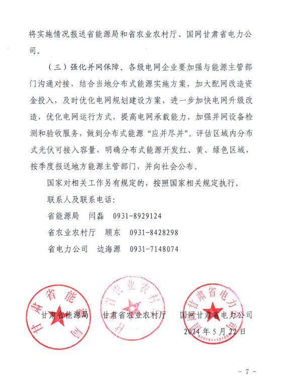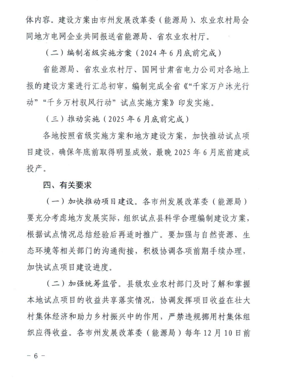 近日,甘肃省能源局、甘肃省农业农村厅、国网甘肃省电力公司联合发布《关于开展甘肃省“千家万户沐光行动”“千乡万村驭风行动” 试点工作的通知》。