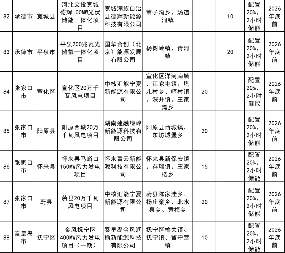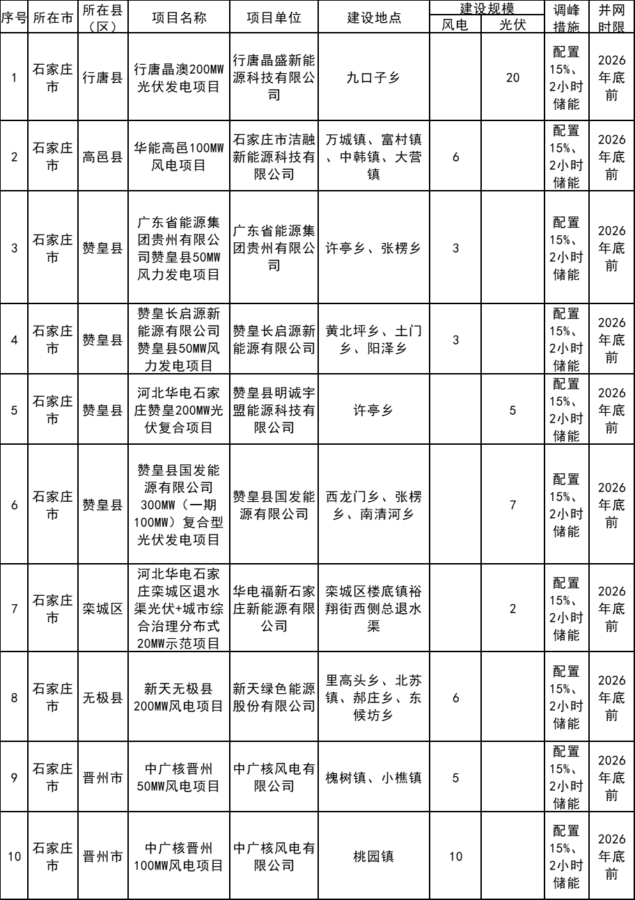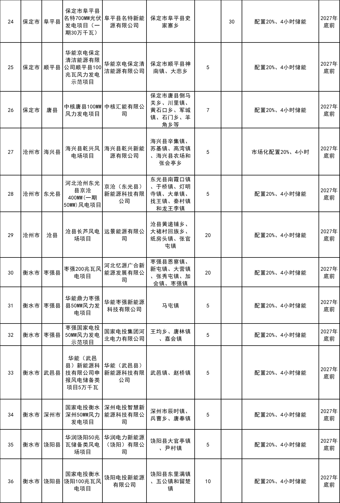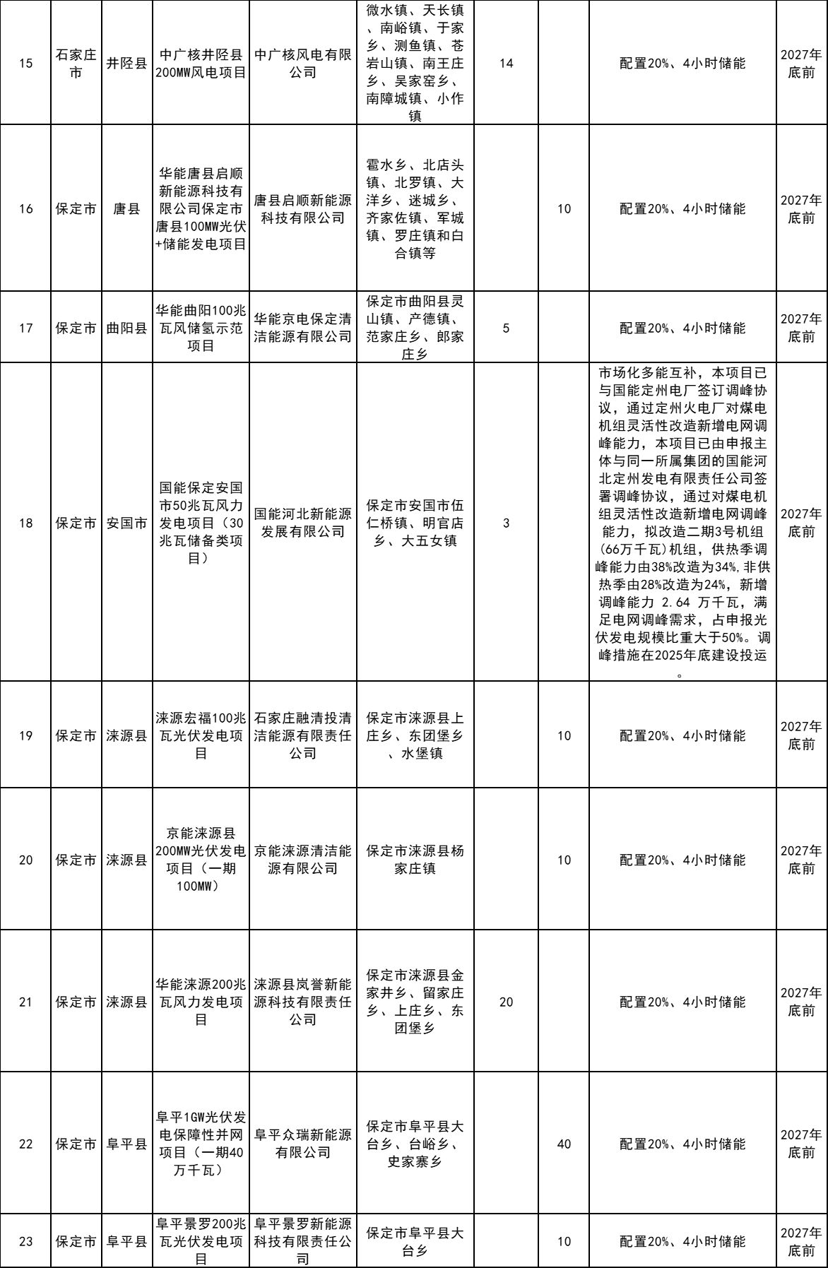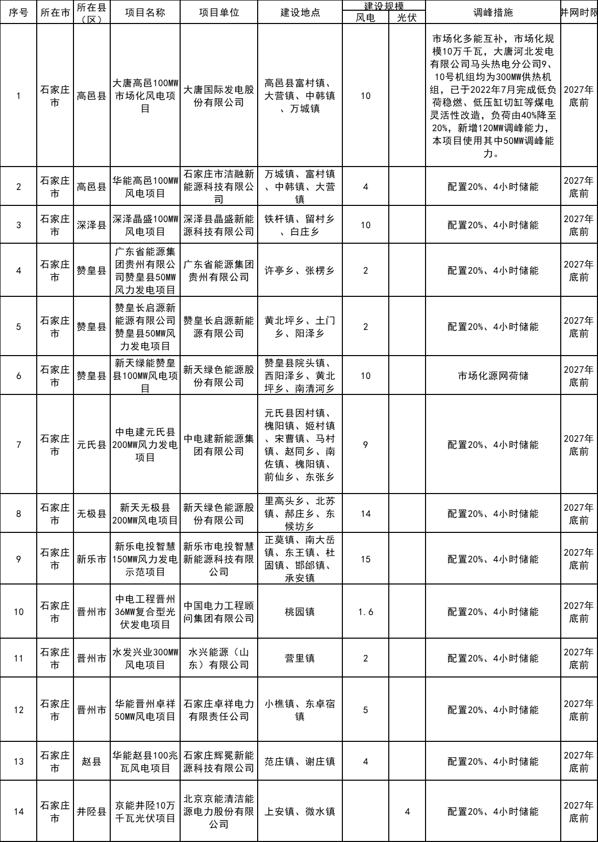 河北省2024年风电、光伏发电开发建设方案拟安排项目情况公示