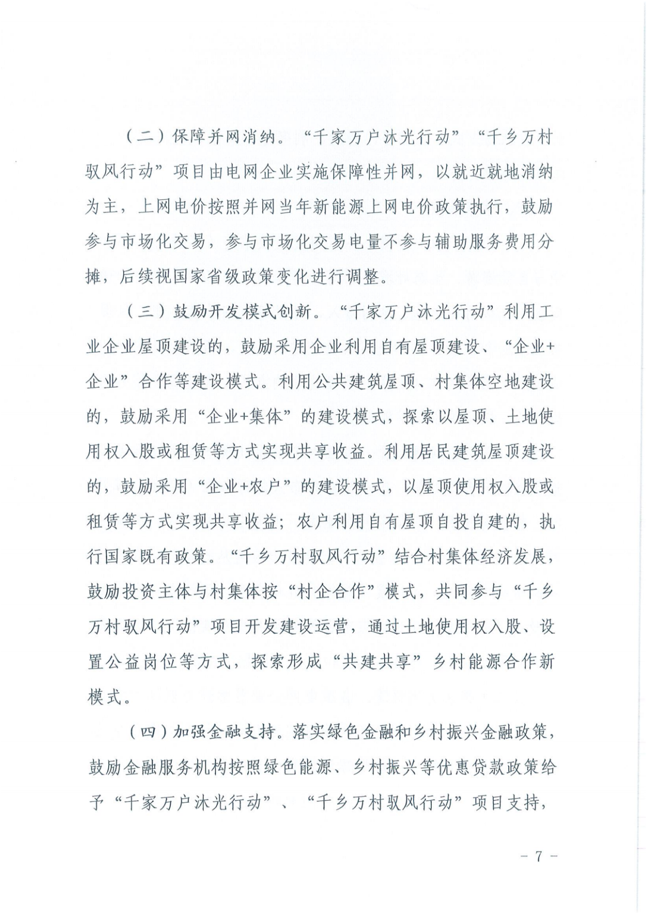 “千乡万村驭风行动”结合村集体经济发展,鼓励投资主体与村集体按“村企合作”模式,共同参与“千乡万村驭风行动”项目开发建设运营,通过土地使用权入股、设置公益岗位等方式,探索形成“共建共享”乡村能源合作新模式。